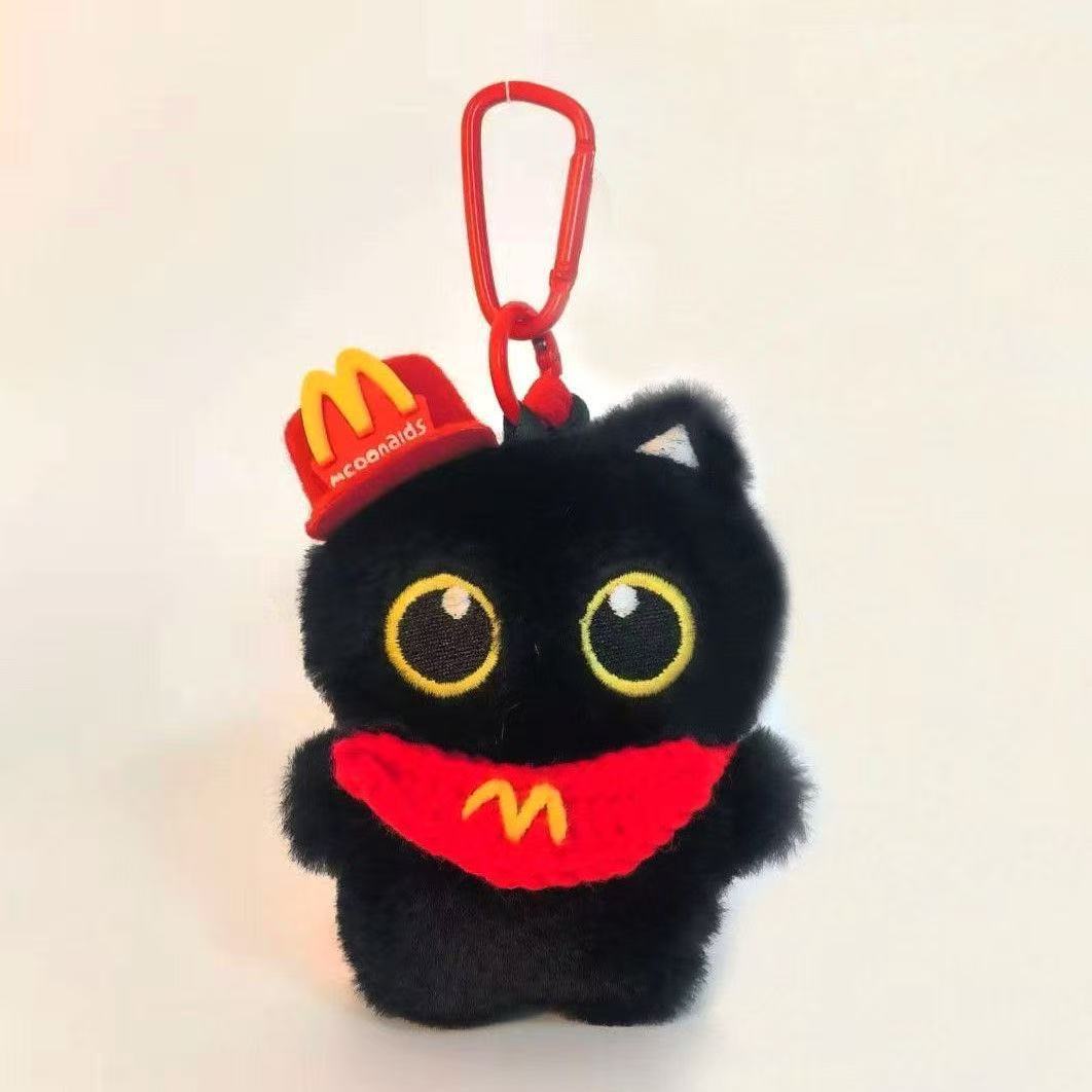 可爱麦门薯条卡通毛绒小黑猫围兜挂件多巴胺口水巾挂饰钥匙扣礼物