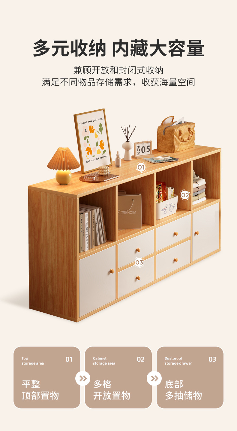 书柜置物柜落地收纳储物柜简易客厅靠墙矮柜柜子家用多层落地书架