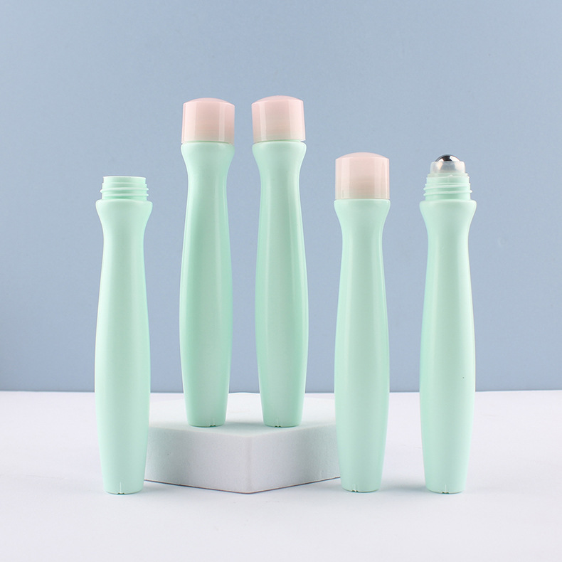 人気の15mlアイクリームローラーボールボトル、スチールボールエッセンスローラーボールマッサージボトル、育毛エッセンシャルオイルローラーボールボトル、蚊よけ液
