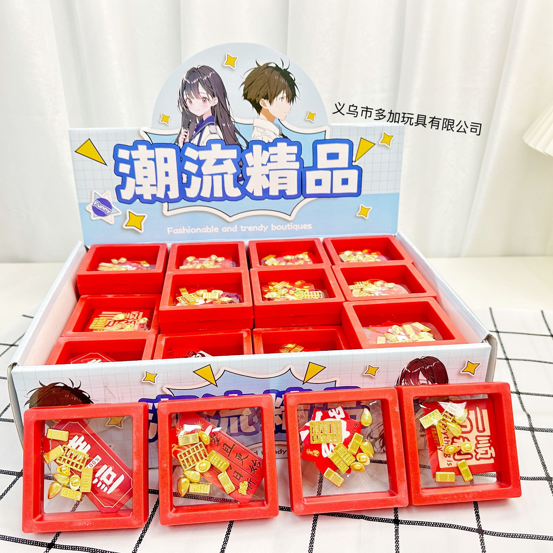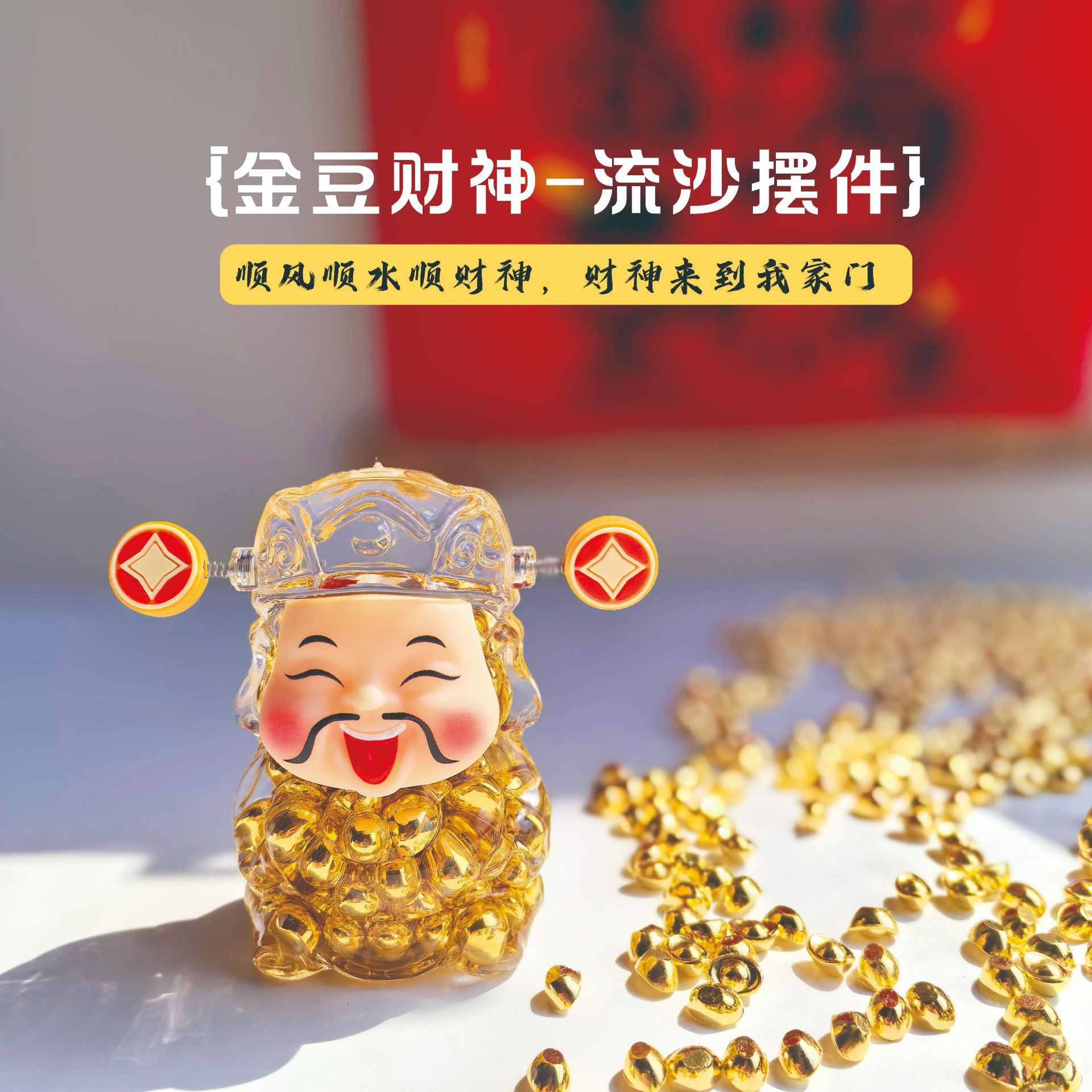 新款潮玩入油流沙金元宝财神金豆招财猫办公室桌面摆件diy装饰品