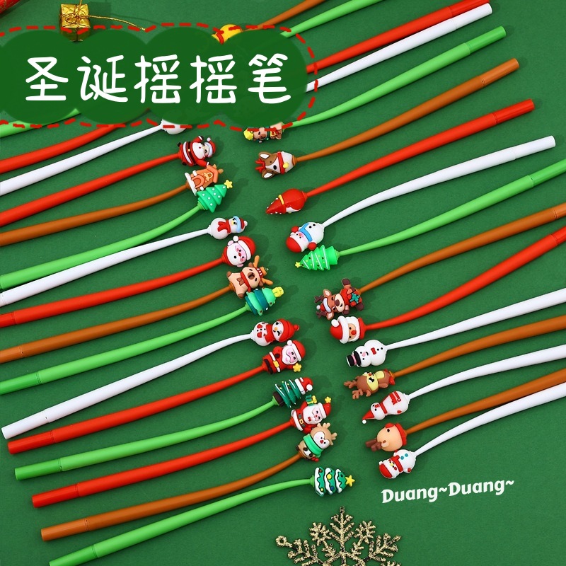 圣诞卡通摇摇乐中性笔学生黑色硅胶签字水笔圣诞节学生文具小礼品