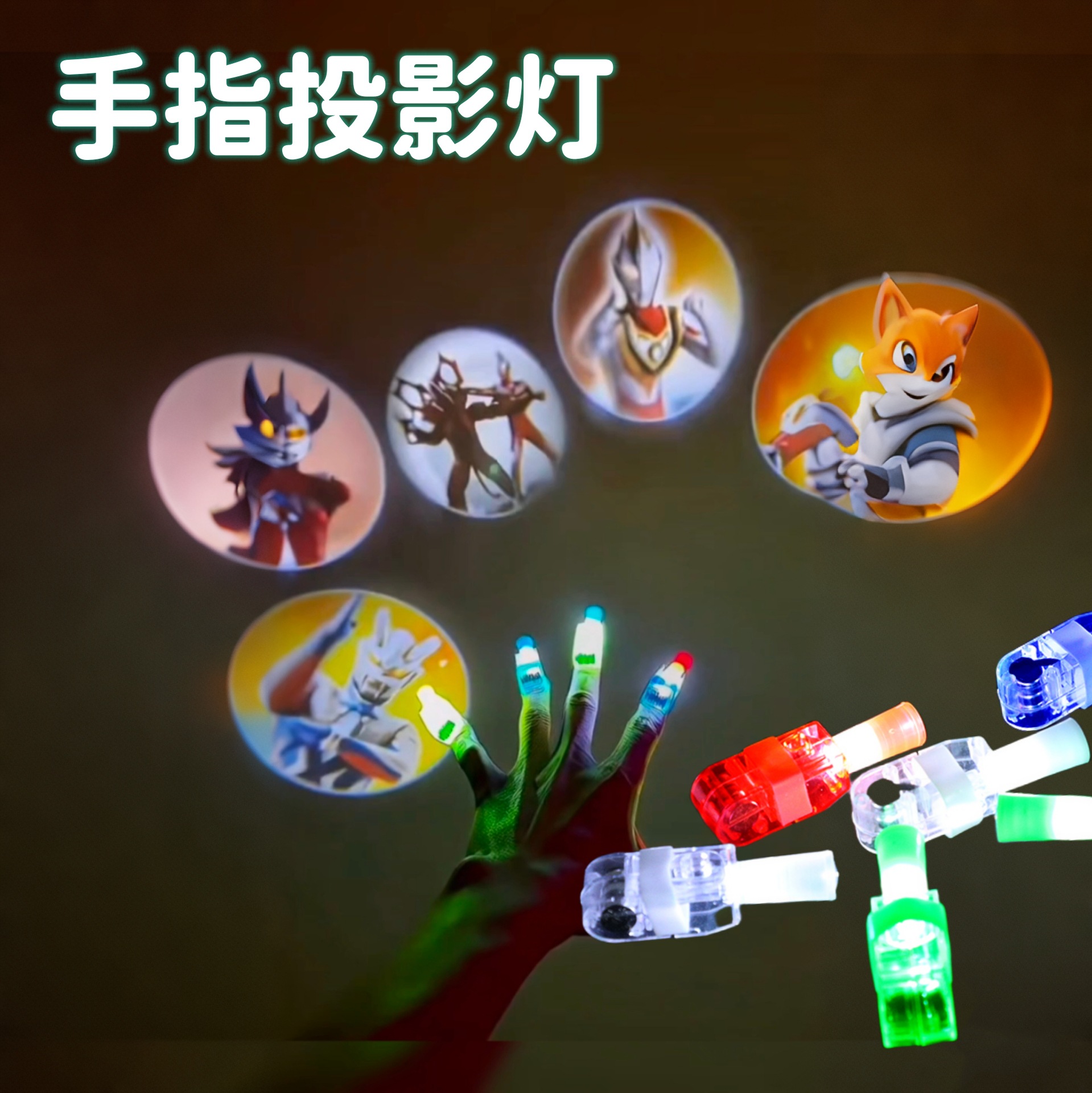 儿童卡通投影灯戒指灯LED发光手指灯儿童趣味投影手电筒发光手指