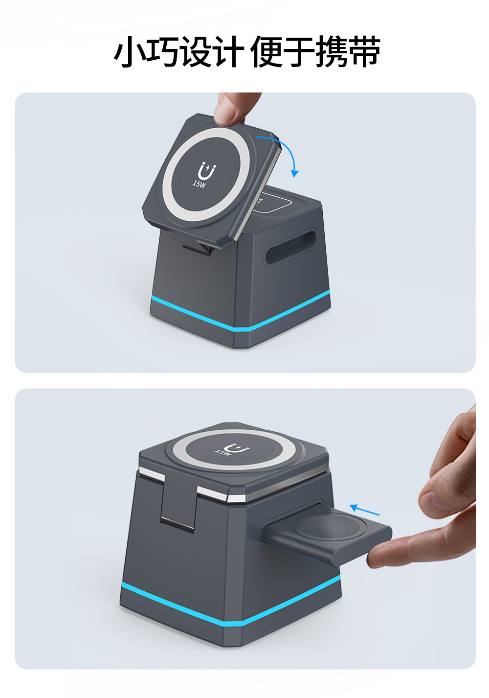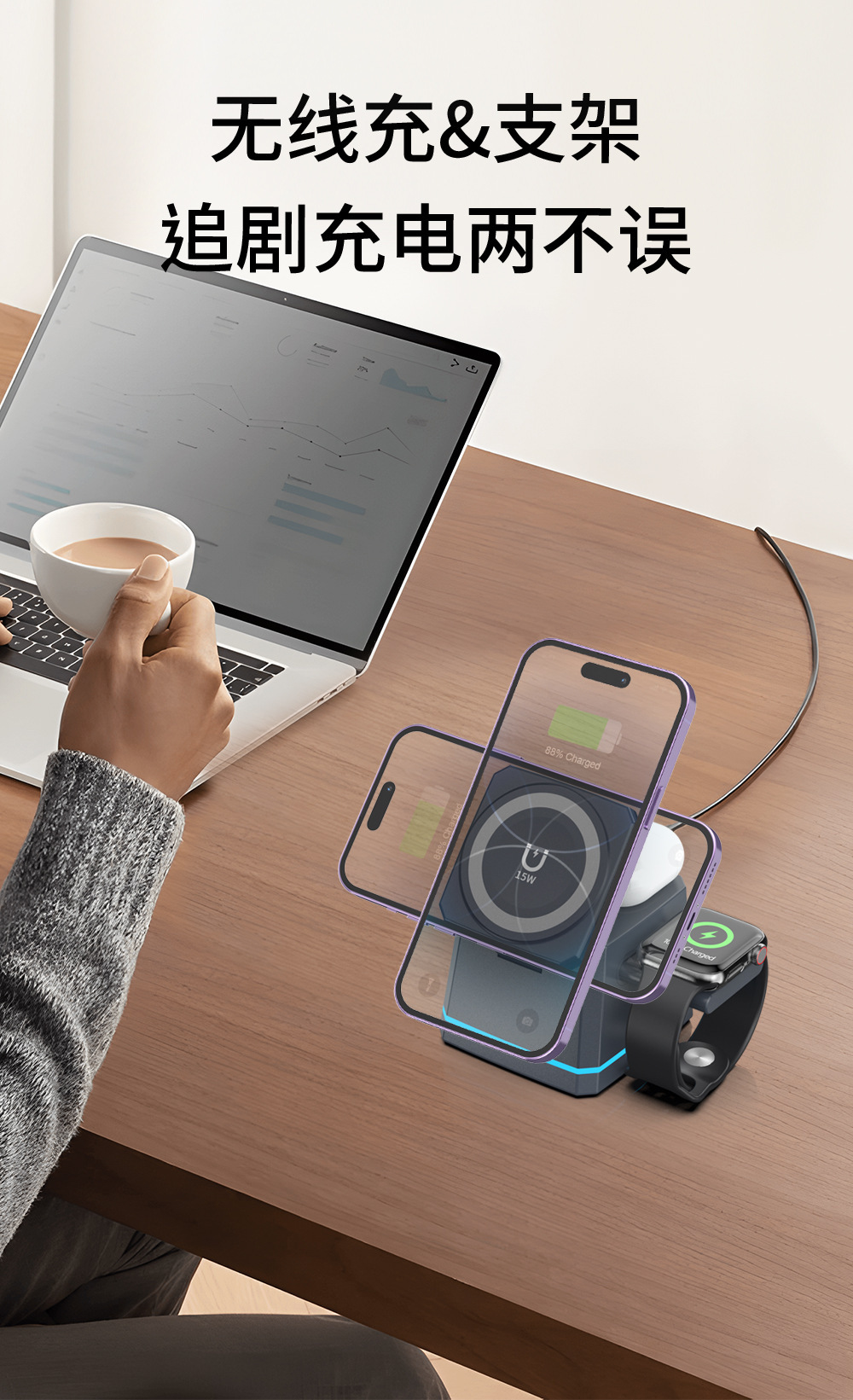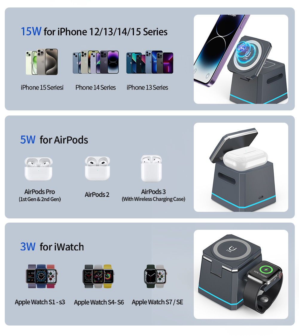 新しいスリーインワン多機能ワイヤレス充電器は、Apple の携帯電話、時計、ヘッドフォンに適した便利な 15W 高速充電です。