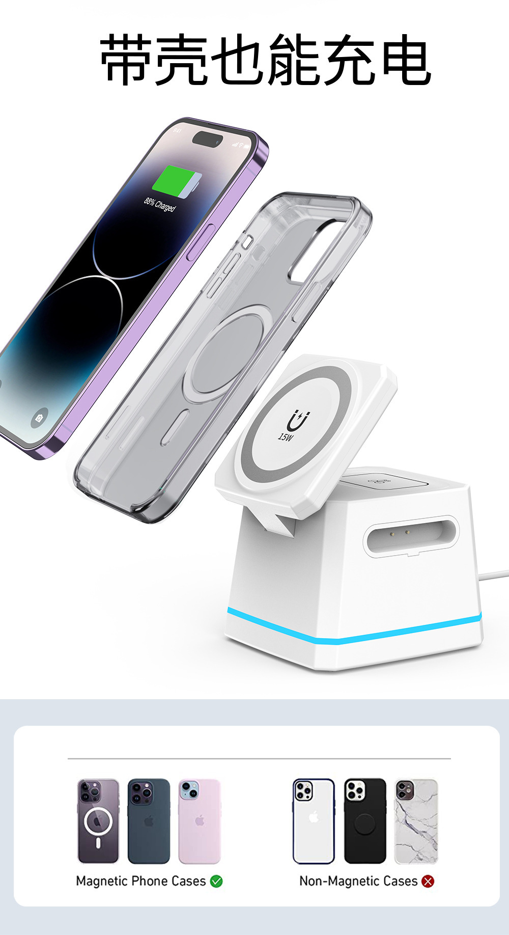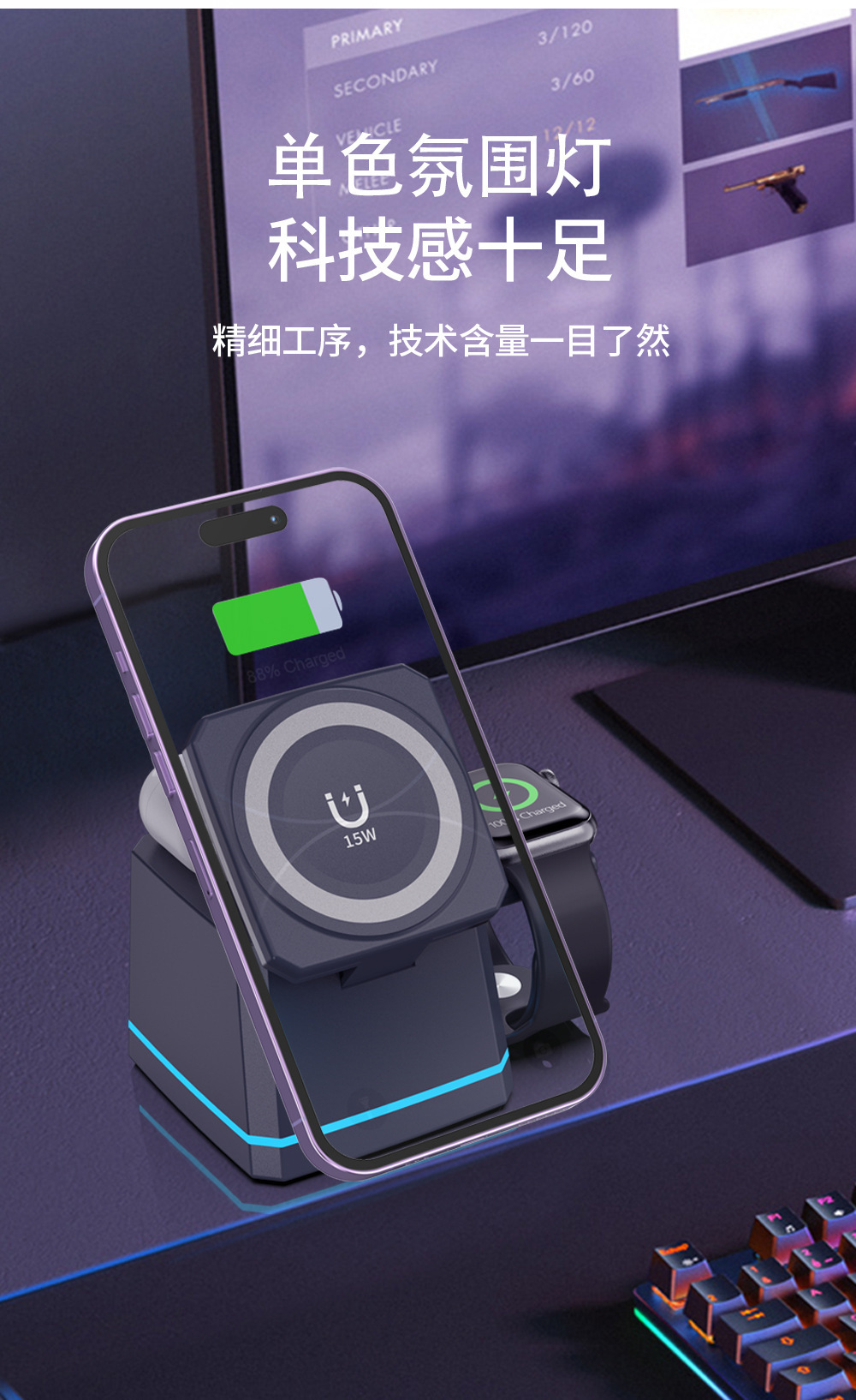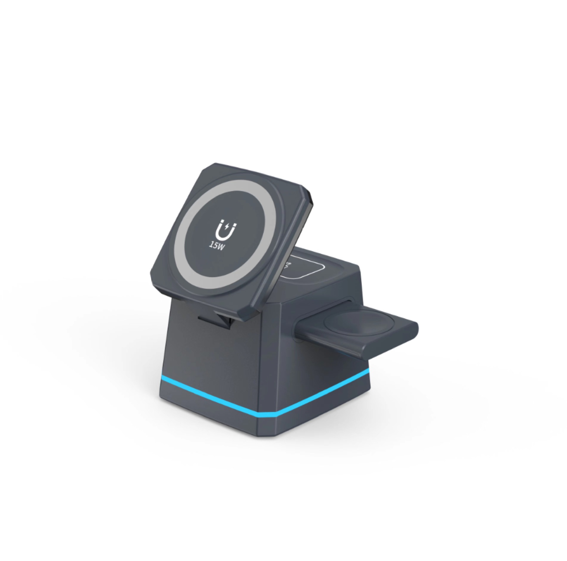 H49跨境新款磁吸三合一无线充电器桌面底座适用于苹果手机支架