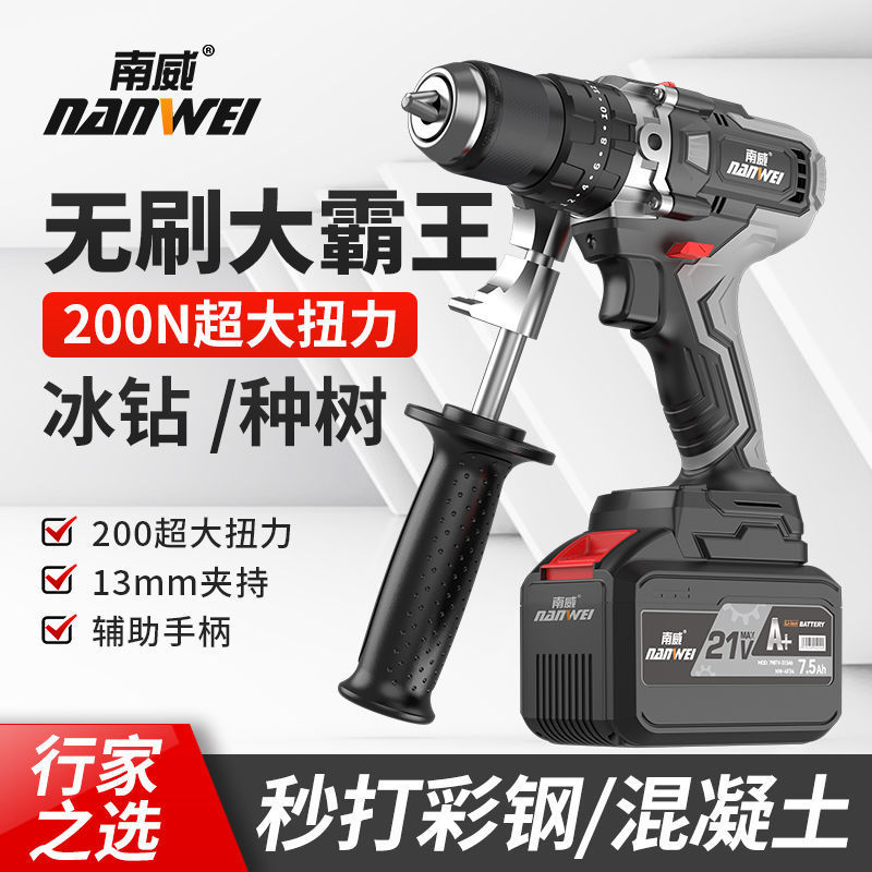 Nanwei ハイパワーブラシレスリチウム電池ドリル充電式ドリル家庭用充電式ピストルドリルハンドドリルインパクトドリル