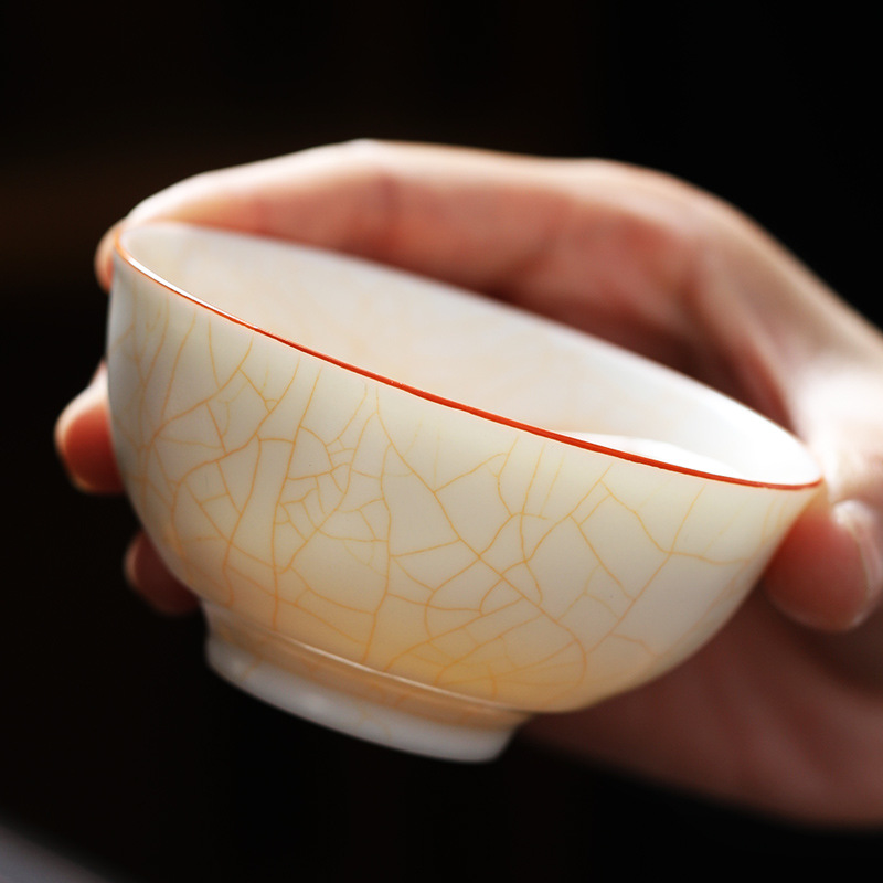 ティーカップマスターカップパーソナル汝窯ティーカップシングル男性と女性の大型カップセラミック羊脂翡翠茶カップ