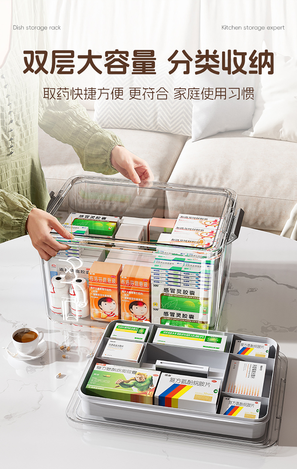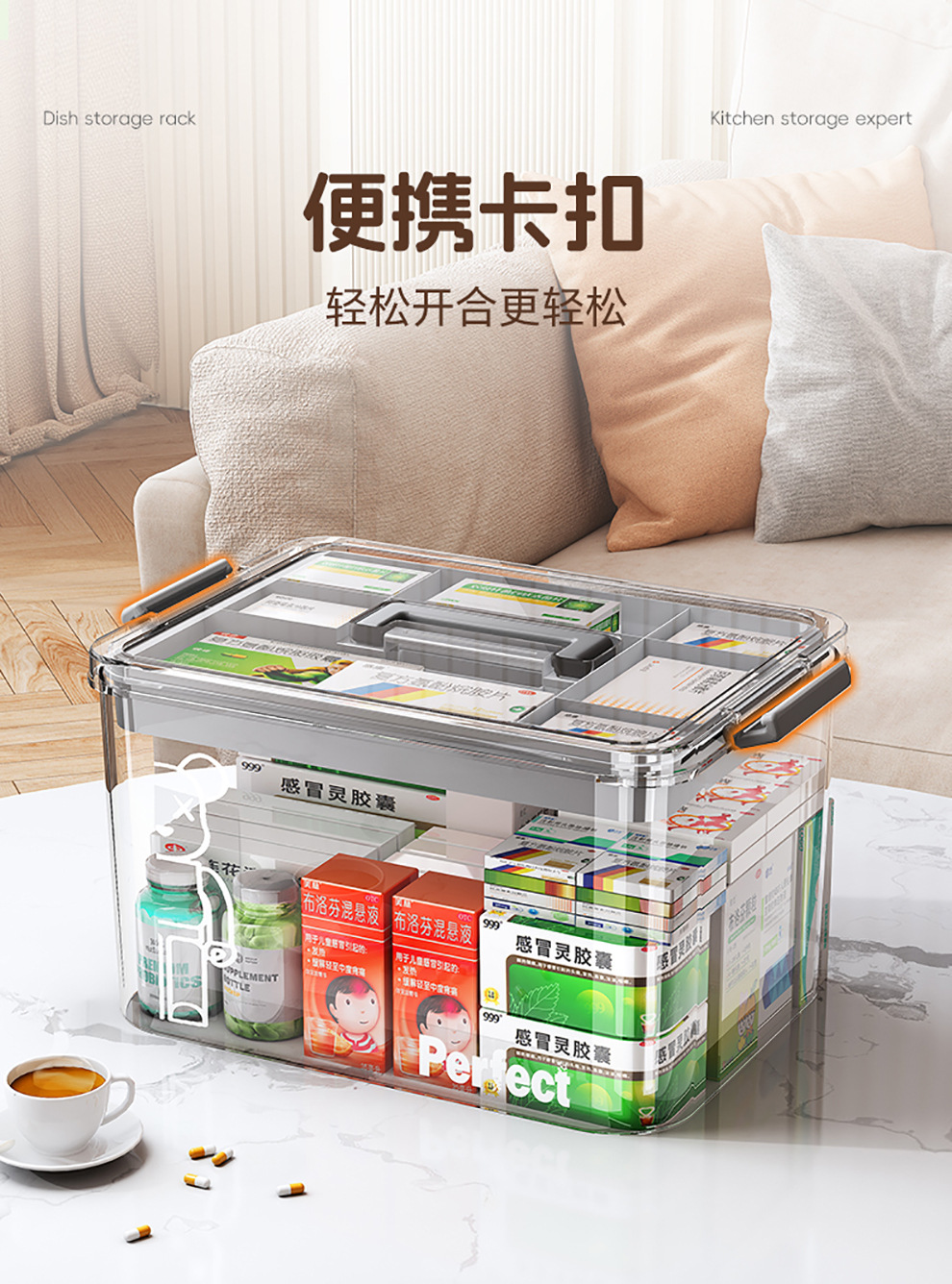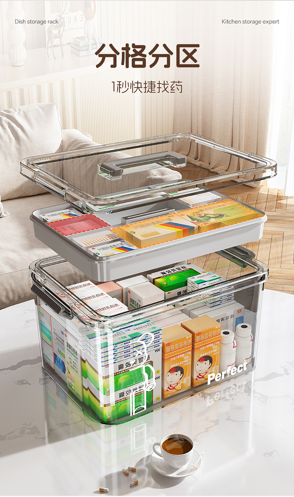 多層薬箱家庭用家庭用薬箱大容量薬収納ボックス透明大型医療救急薬箱