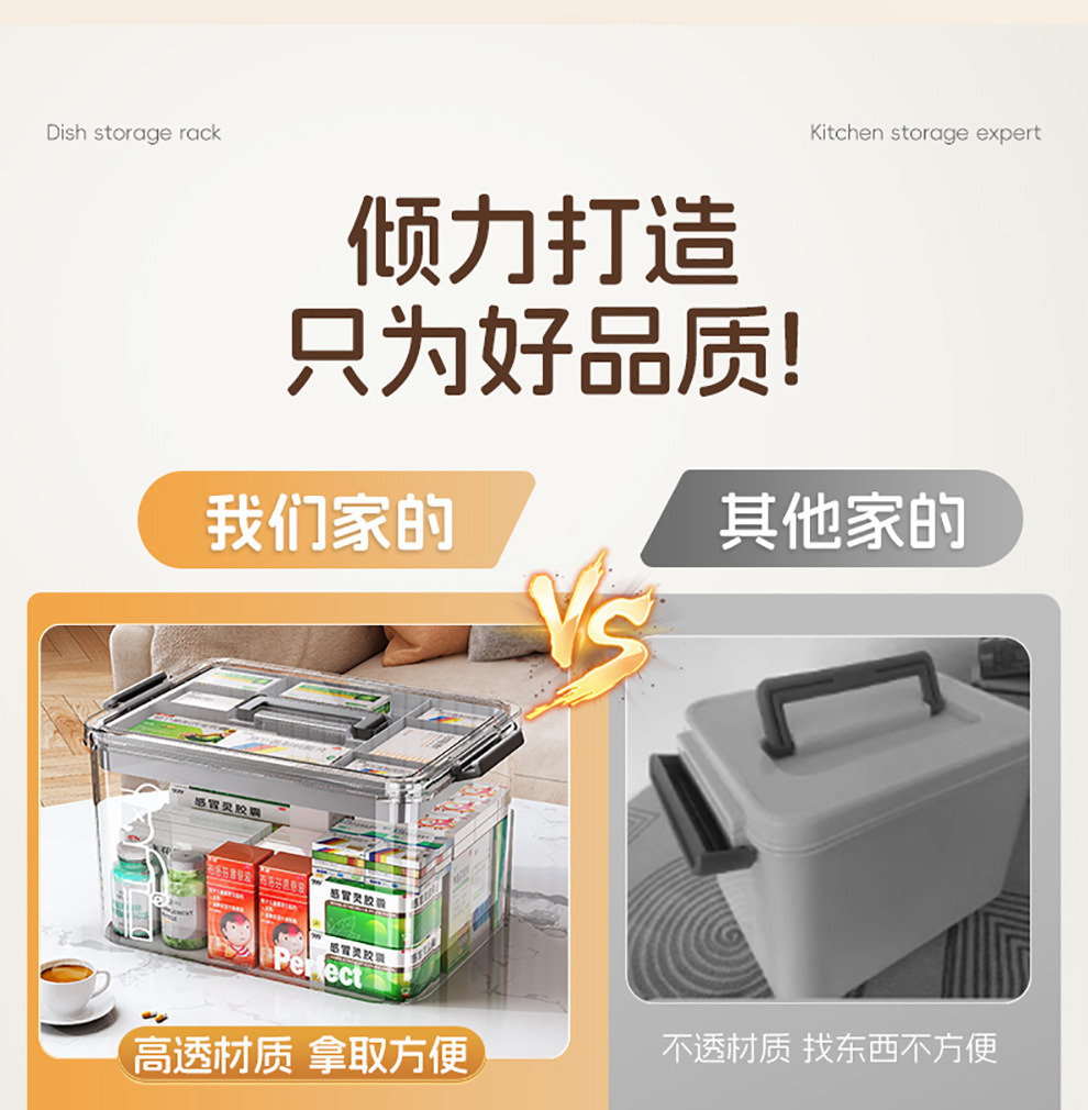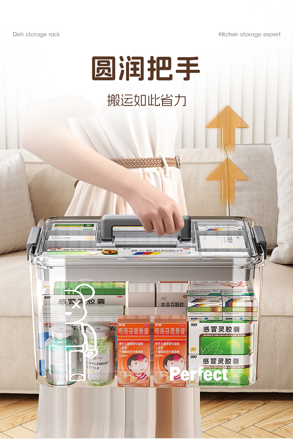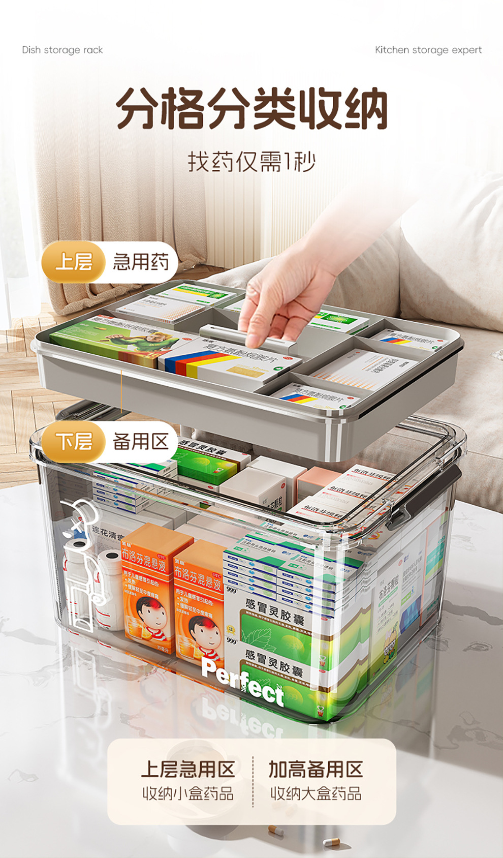 多層薬箱家庭用家庭用薬箱大容量薬収納ボックス透明大型医療救急薬箱
