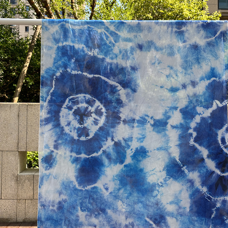 幼稚園の環境に優しい工芸品の背景布、半透明のガーゼスカーフ布、夏の発送用の絞り染め生地完成品