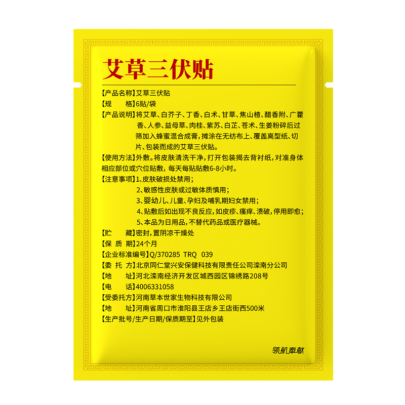 北京同仁堂内廷で艾草腰椎で12枚貼ります。