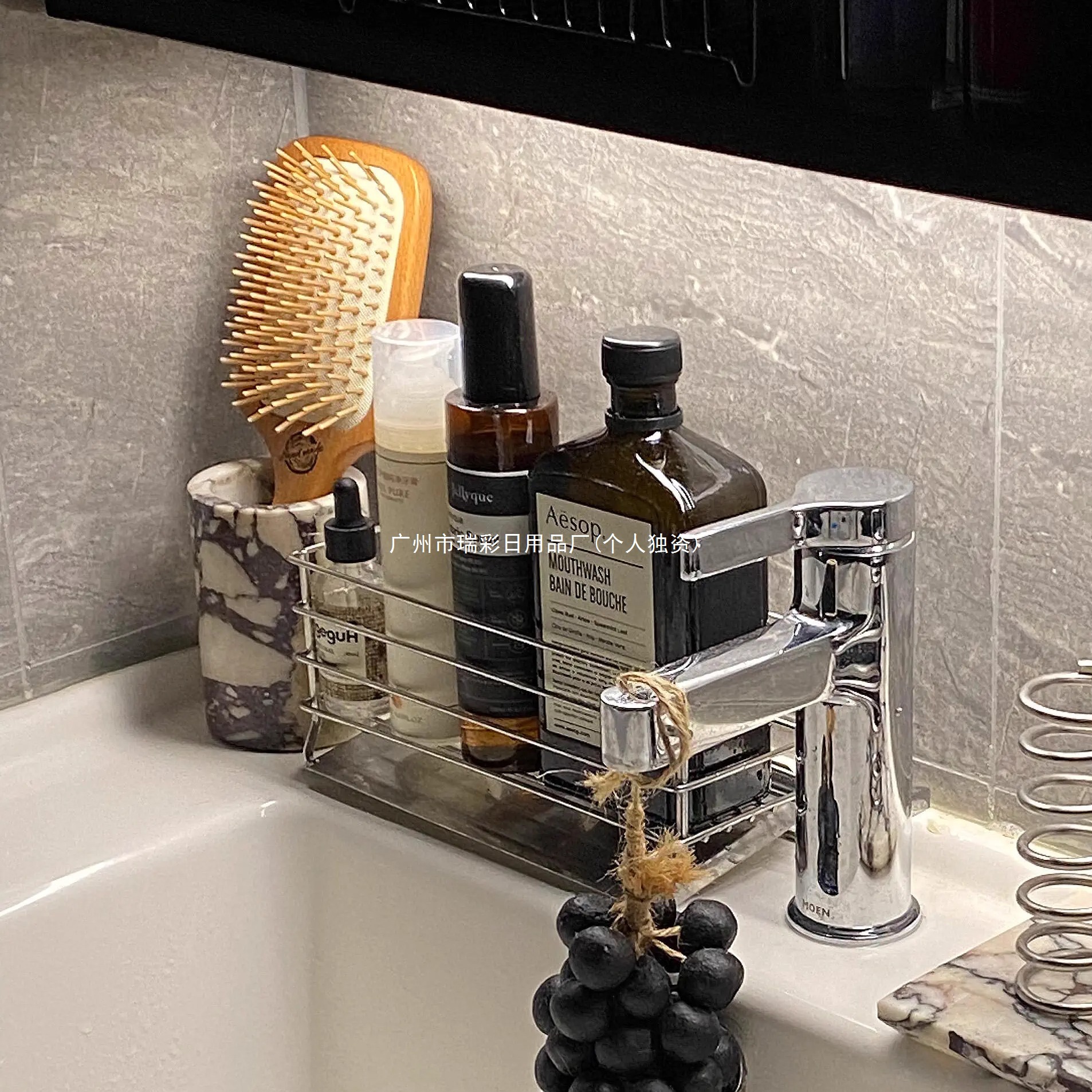 ins ミニマリストスタイルのステンレス鋼アート歯ブラシホルダーシンク洗面所収納ラック浴室デスクトップ排水収納ラック