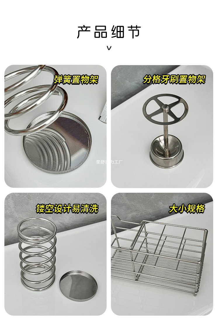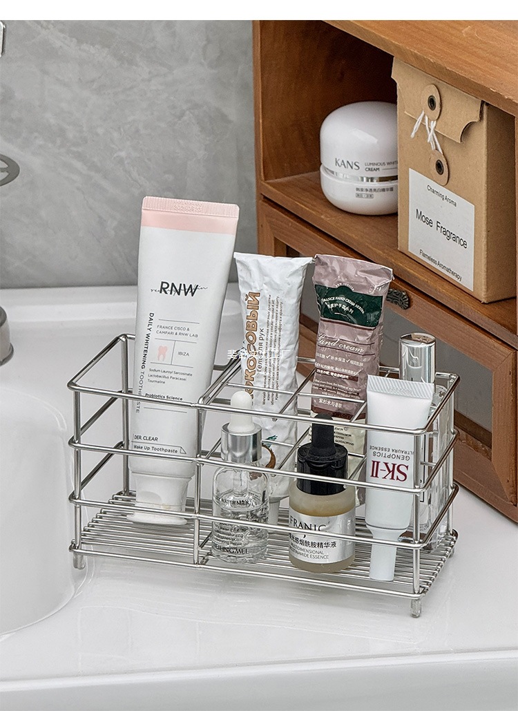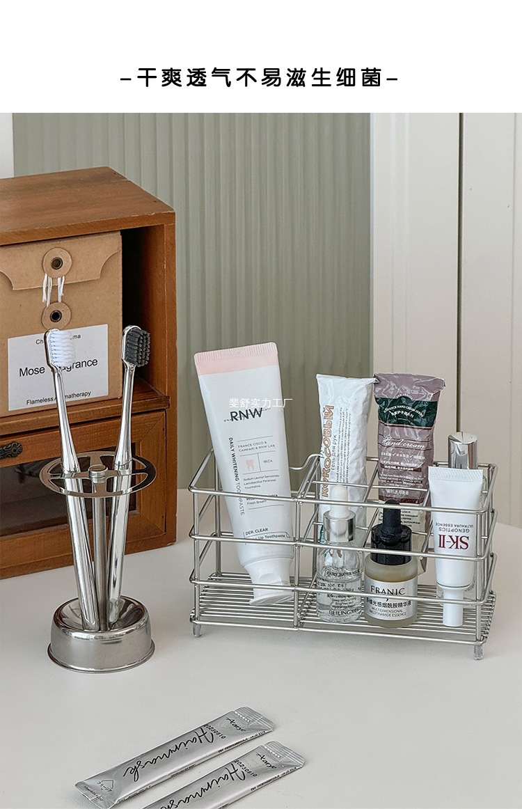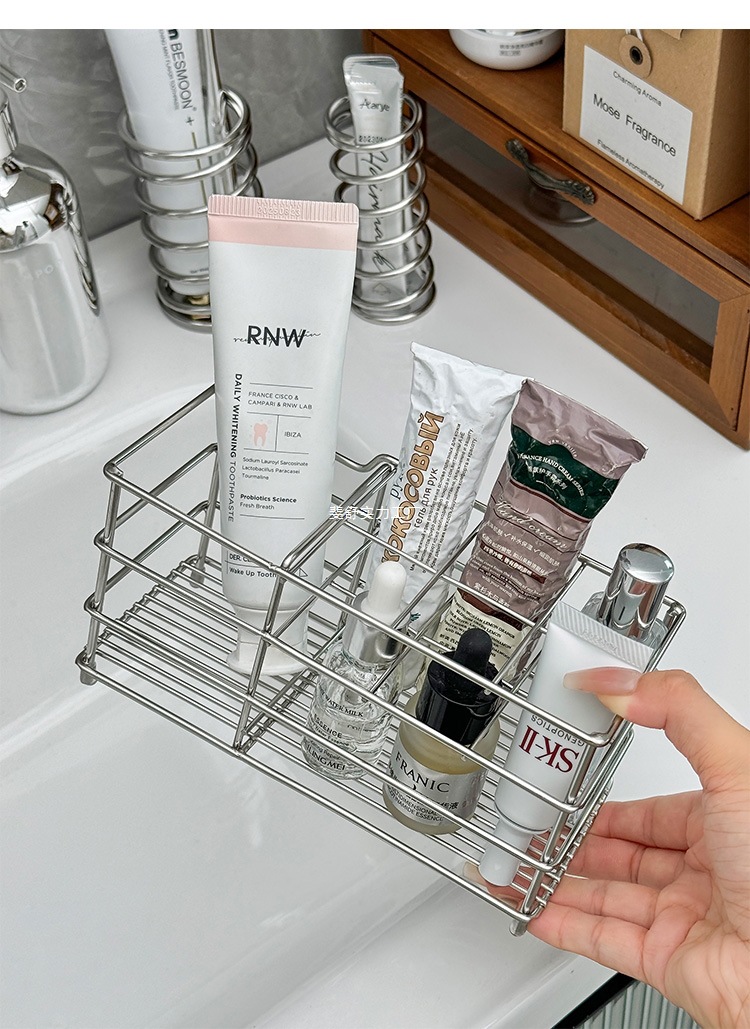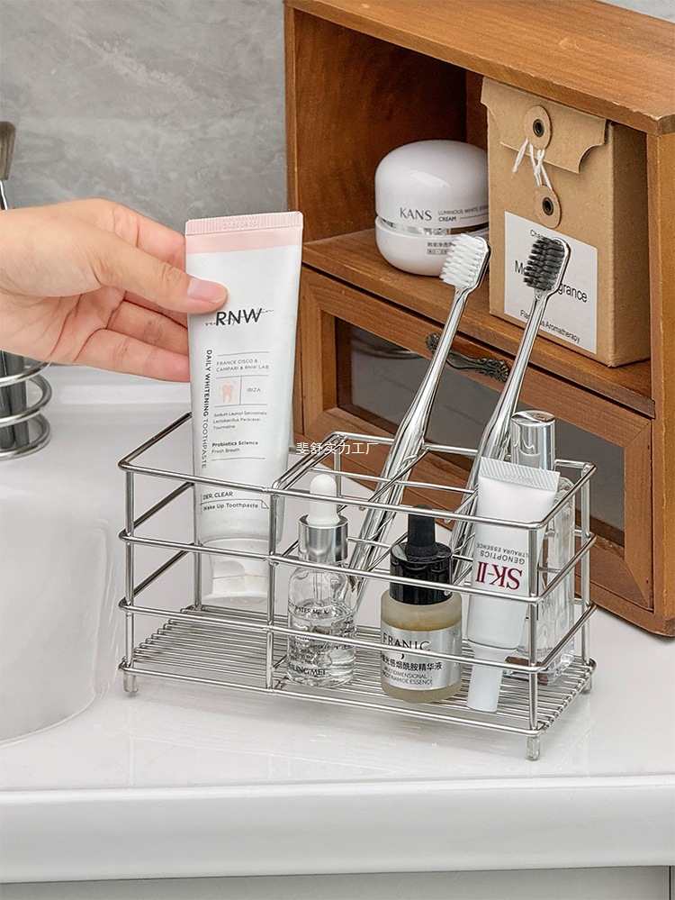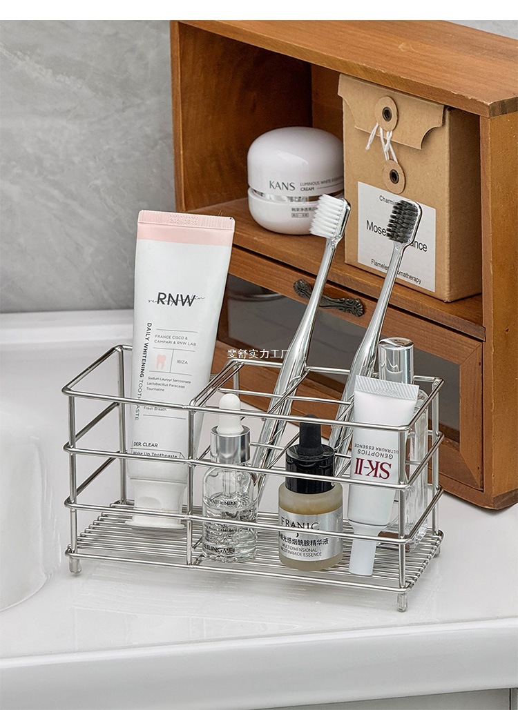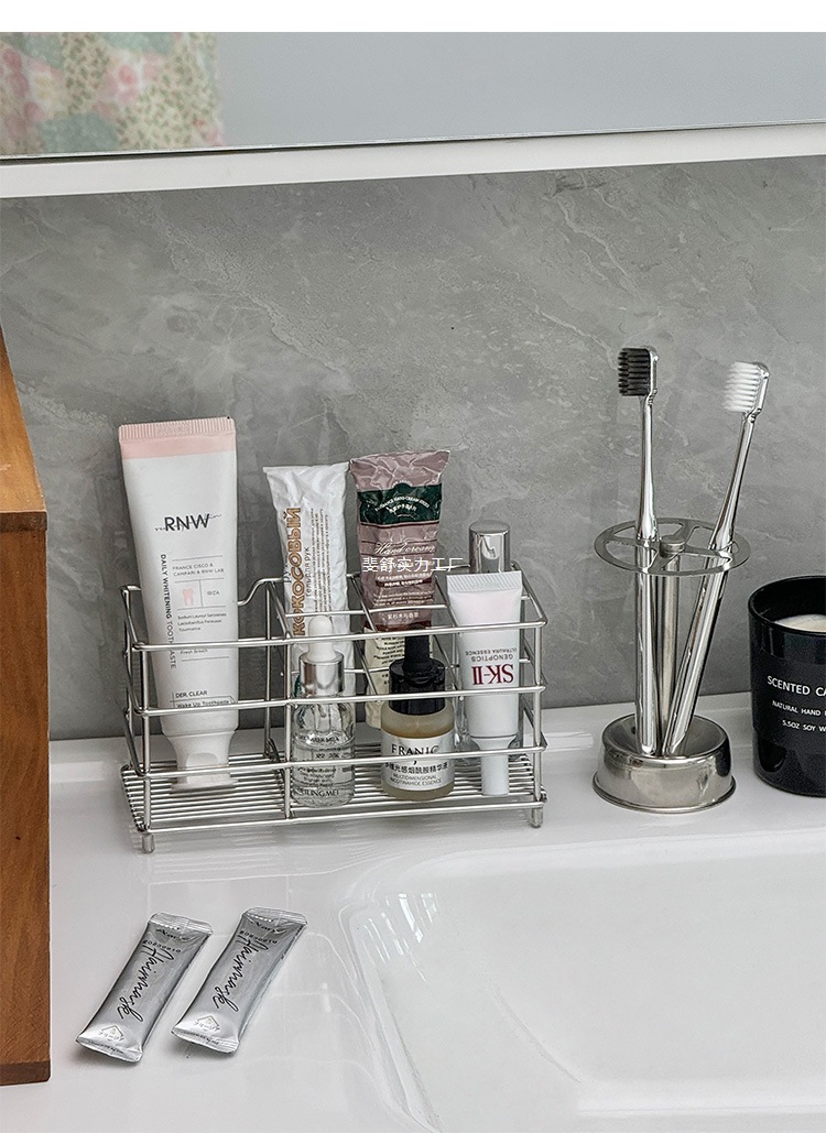 浴室牙刷架筐台面沥水置物架化妆篮筐不锈钢护肤品收纳卫生间