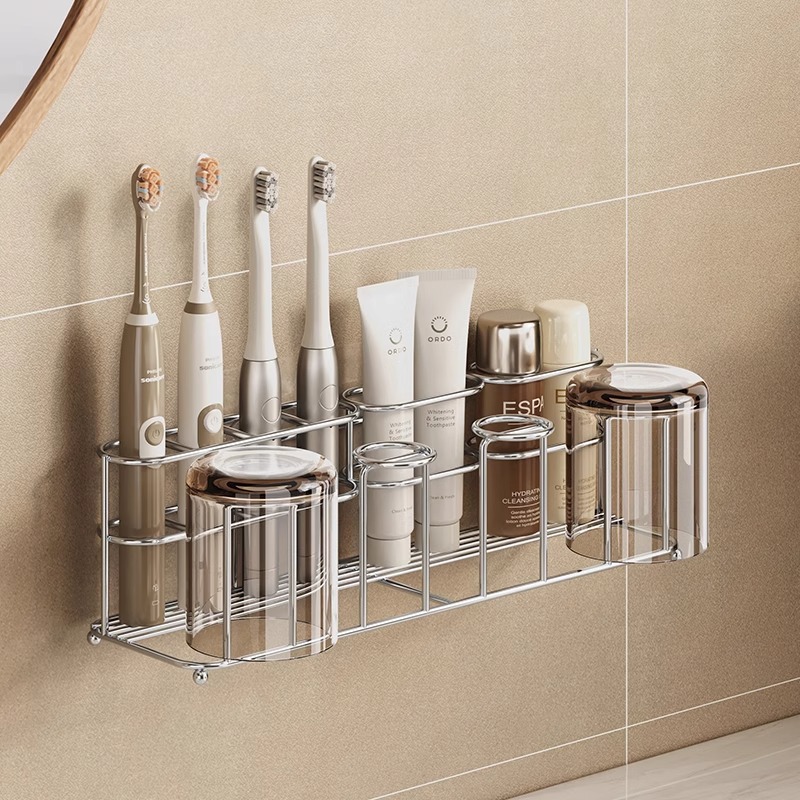 クロスボーダーステンレス鋼歯ブラシ収納ラックパンチフリーバスルーム歯磨き粉ホルダーカウンタートップバスルームマウスウォッシュカップ収納ラック