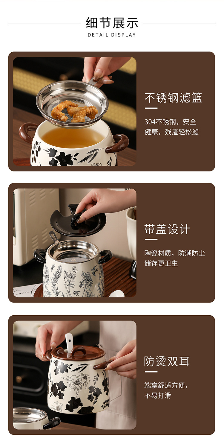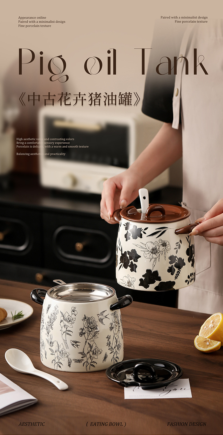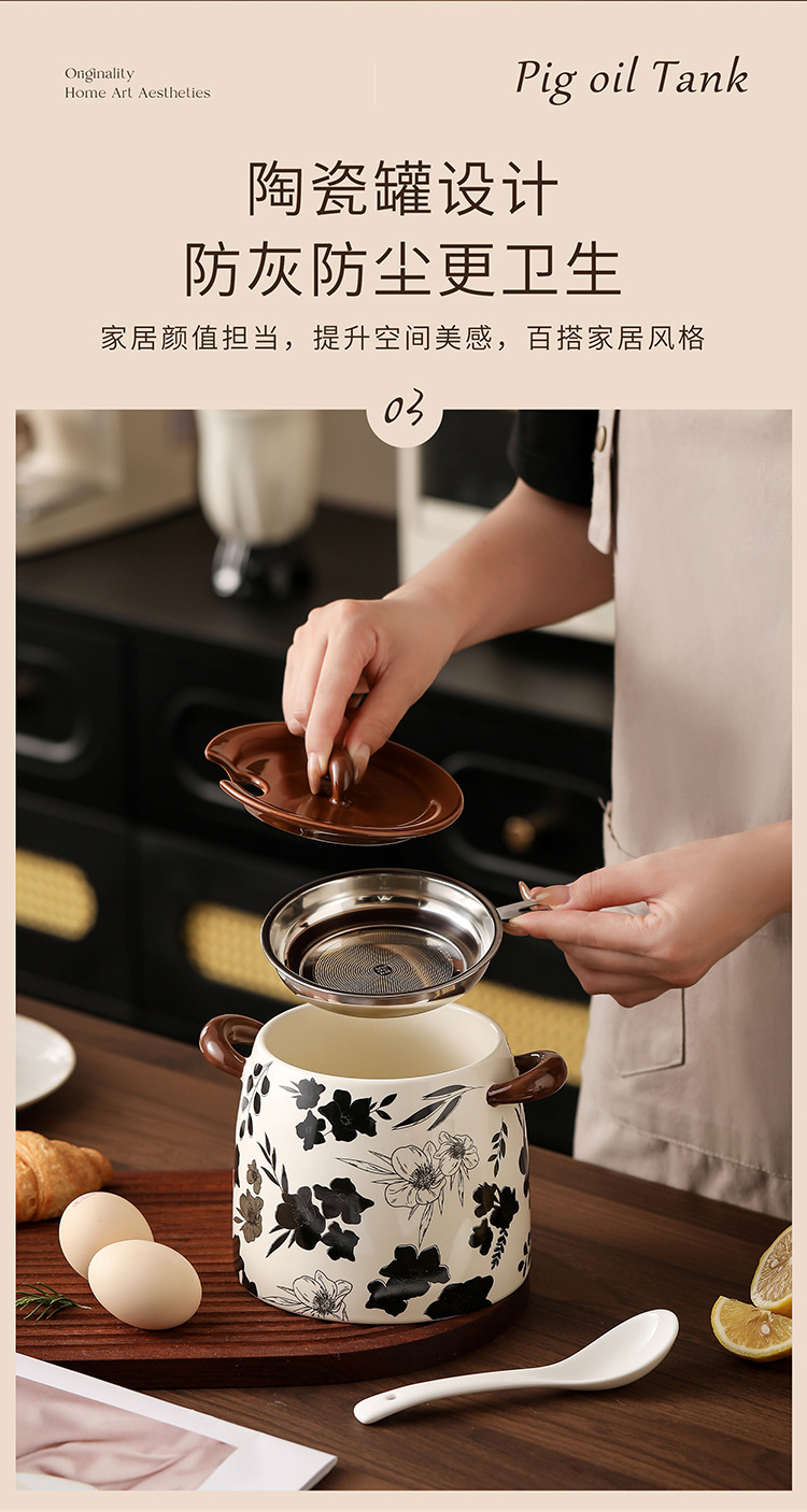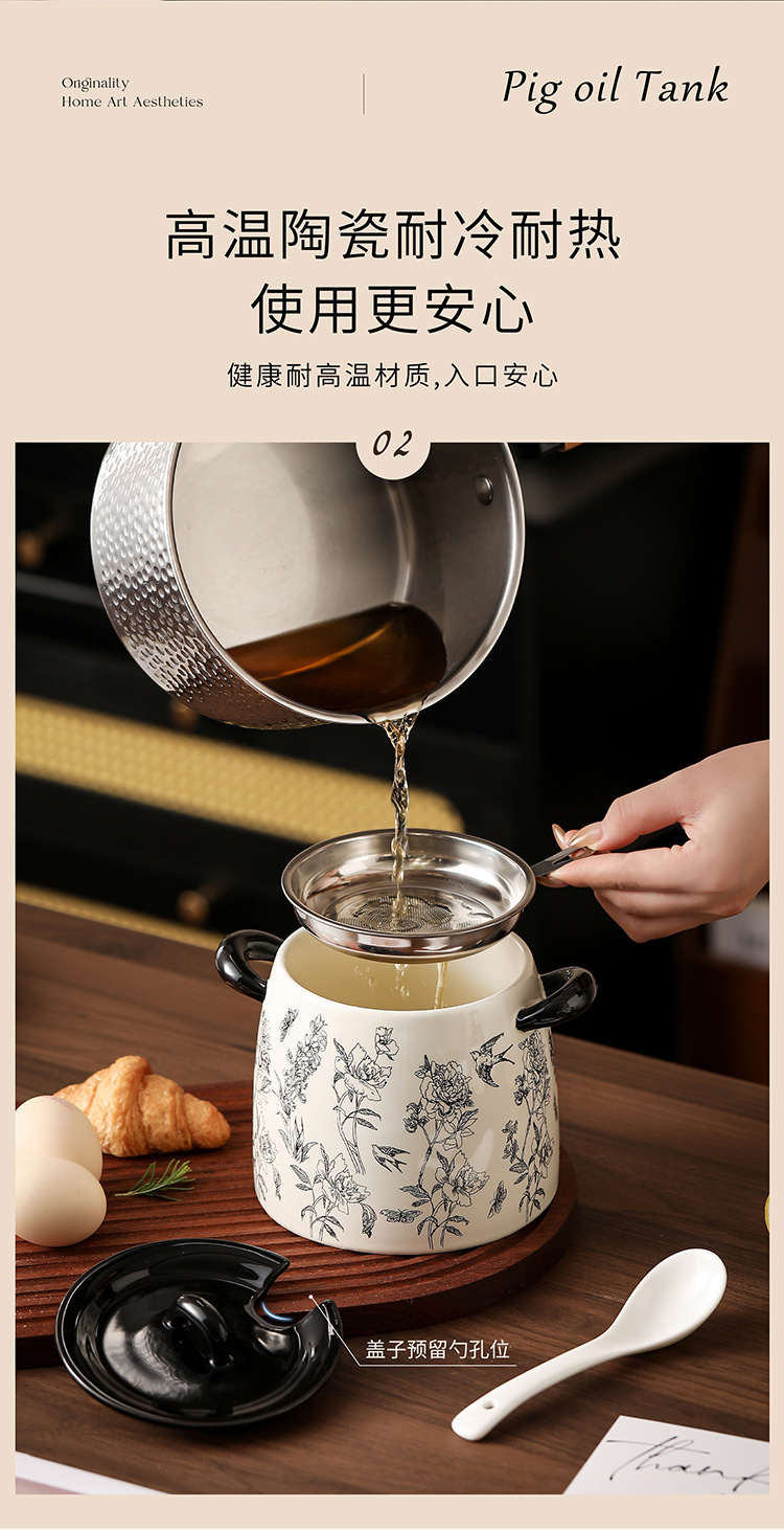 猪油罐家用可放冰箱复古大容量猪油罐带勺带滤网陶瓷猪油罐食品级