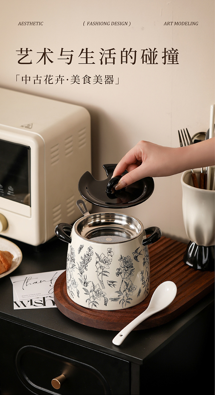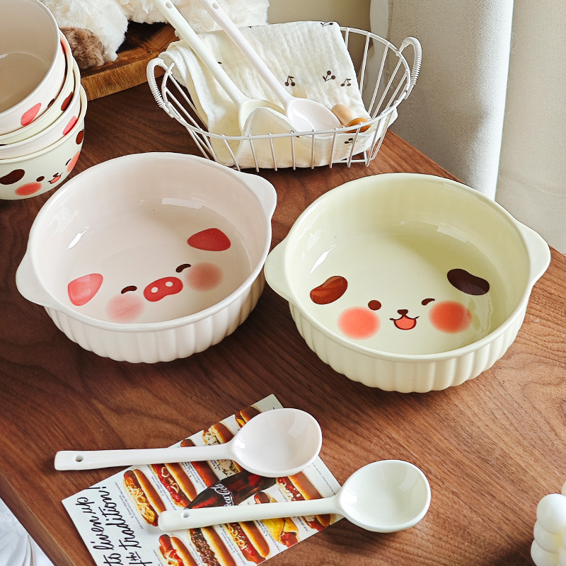 クリーム風ソフト萌え食器陶磁器家庭用ご飯ボウル皿スープボウルスプーン釉薬下彩食高颜値ヨーグルトボウル