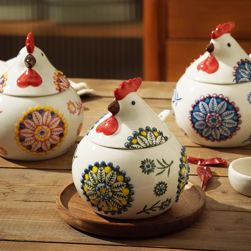ひよこセラミック調味料缶塩缶キッチン家庭用高級調味料缶防湿調味料箱辛い缶蓋付きスプーン