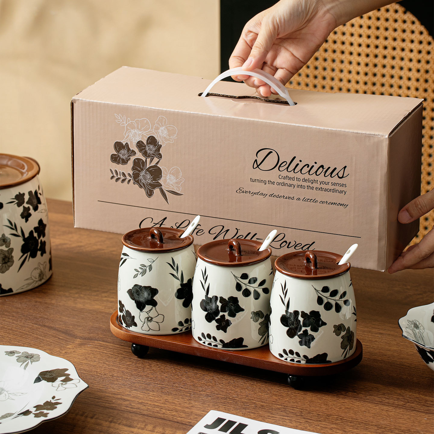复古家用调料罐厨房陶瓷中古风盐罐调料瓶辣椒油荤油罐子套装分装