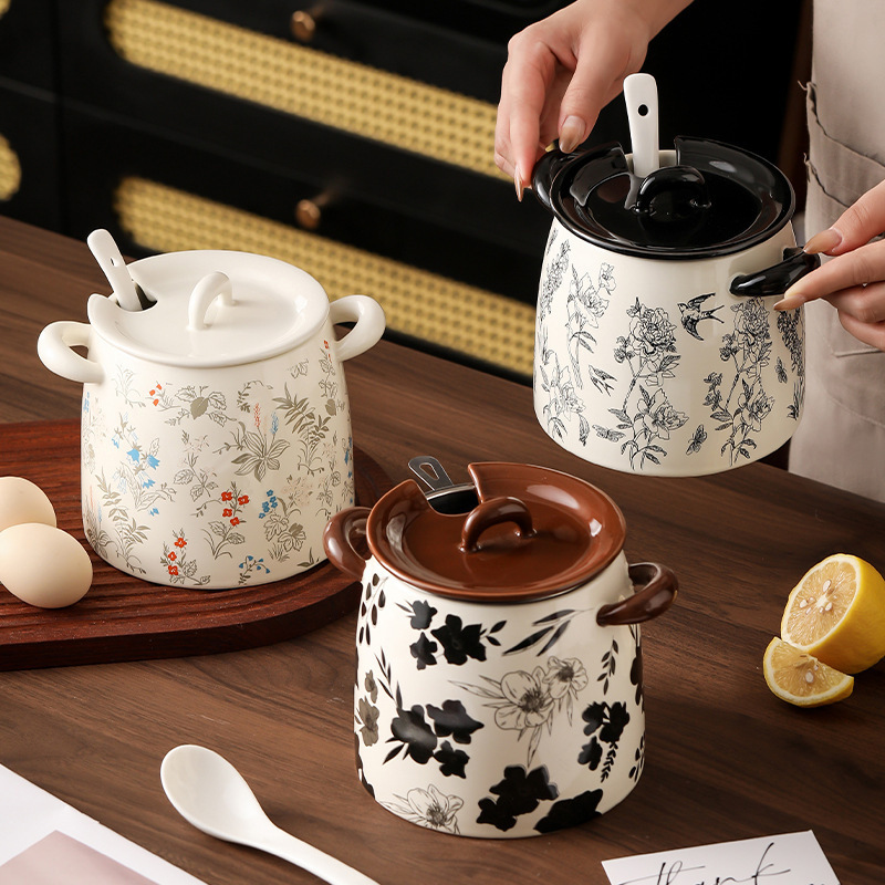 ラード缶セラミック下絵色家庭用大型高温耐性調味料ボックス調味料缶ボトルキッチンラー油肉油缶
