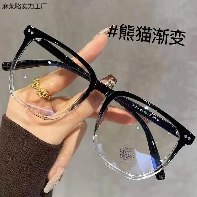 注目度抜群! 優しくニッチでハンサムなスクエアフレームは、男性と女性のための度付きプレーンミラー近視メガネと組み合わせることができます。