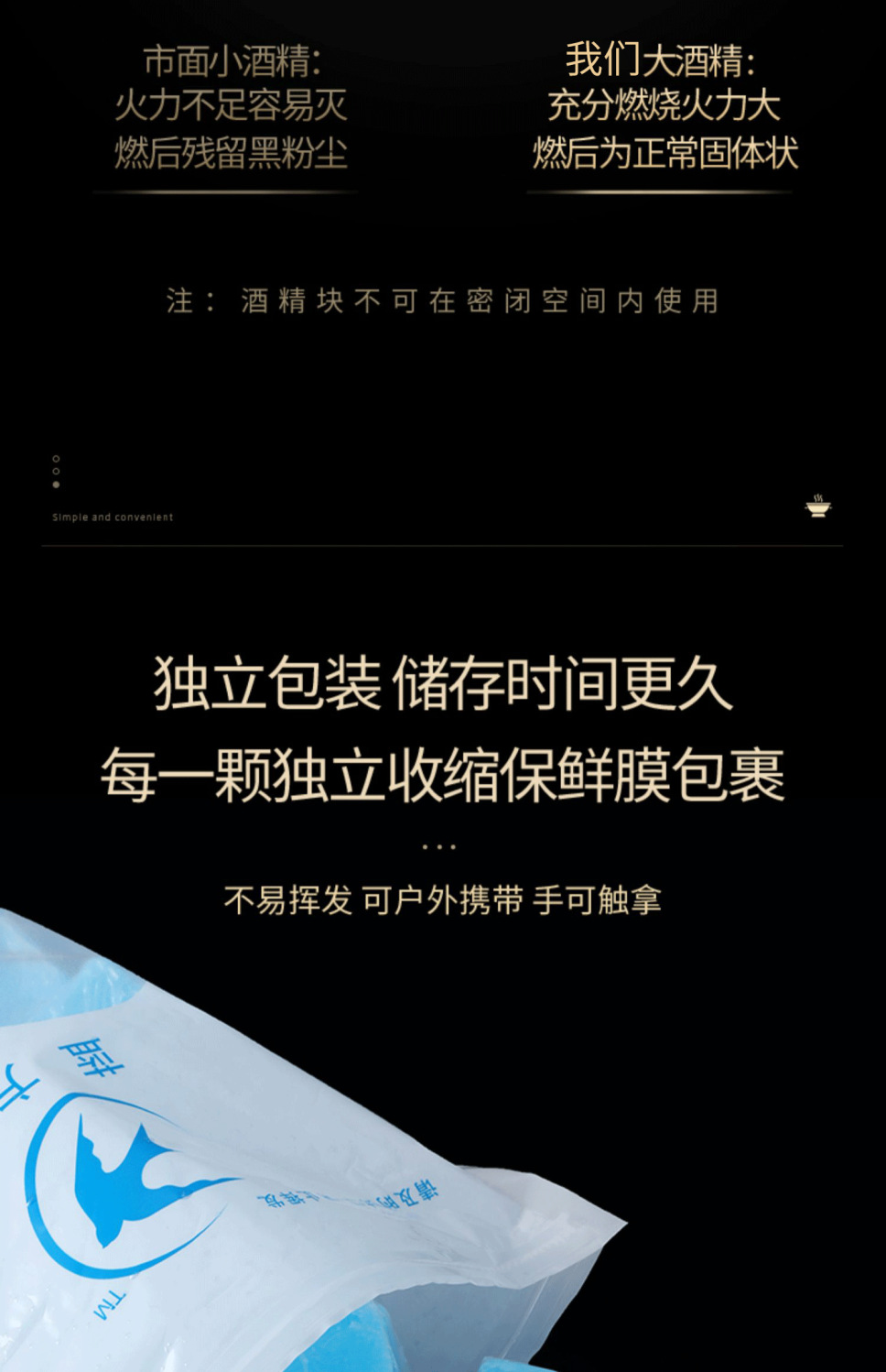 アルコールストーブ、小型鍋、専用固形アルコールブロック、乾鍋、木炭着火、耐燃性固形燃料ワックス