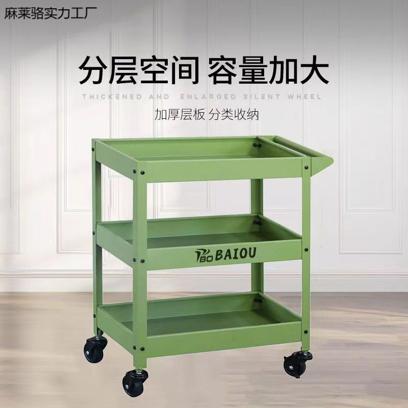 グリーン三層トロリー、インダストリアルスタイルツールトロリー、サイレントローラー収納部品、移動式フラワースタンド、グリーン植物
