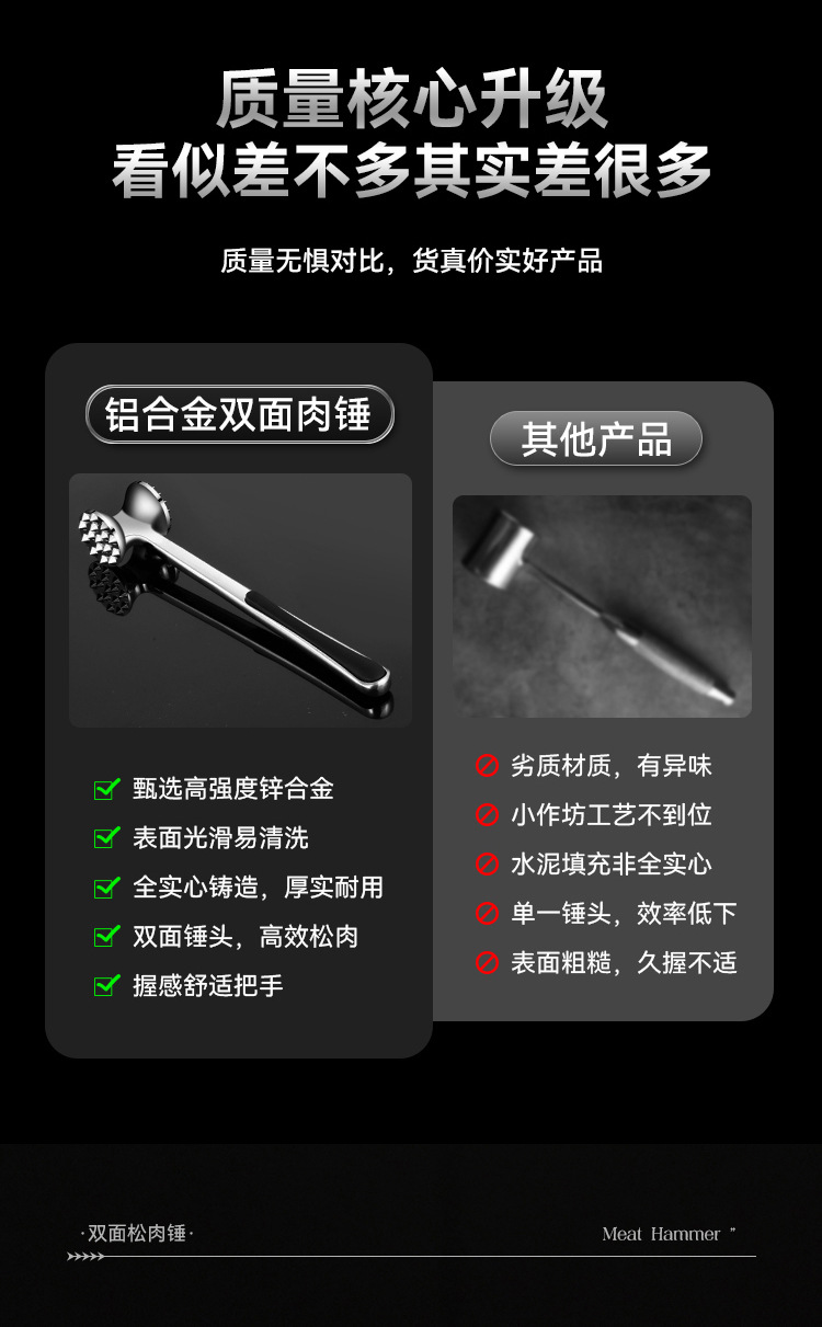 工場直販 厚みのあるキッチンミートハンマー ステーキ専用両面ハンマー ラージステーキハンマー ステーキハンマー