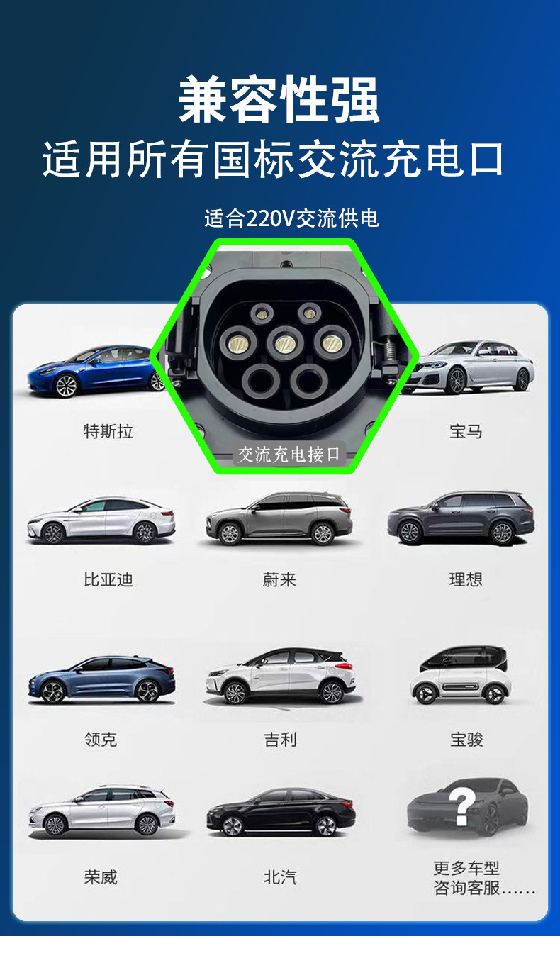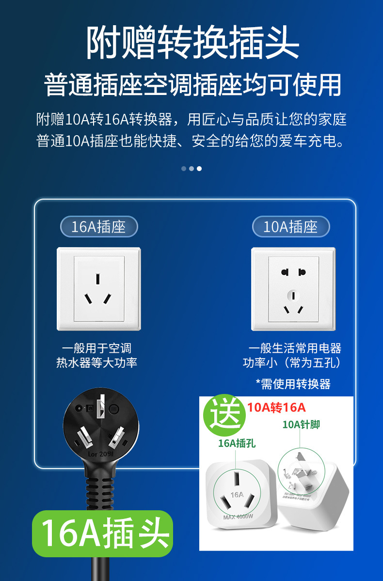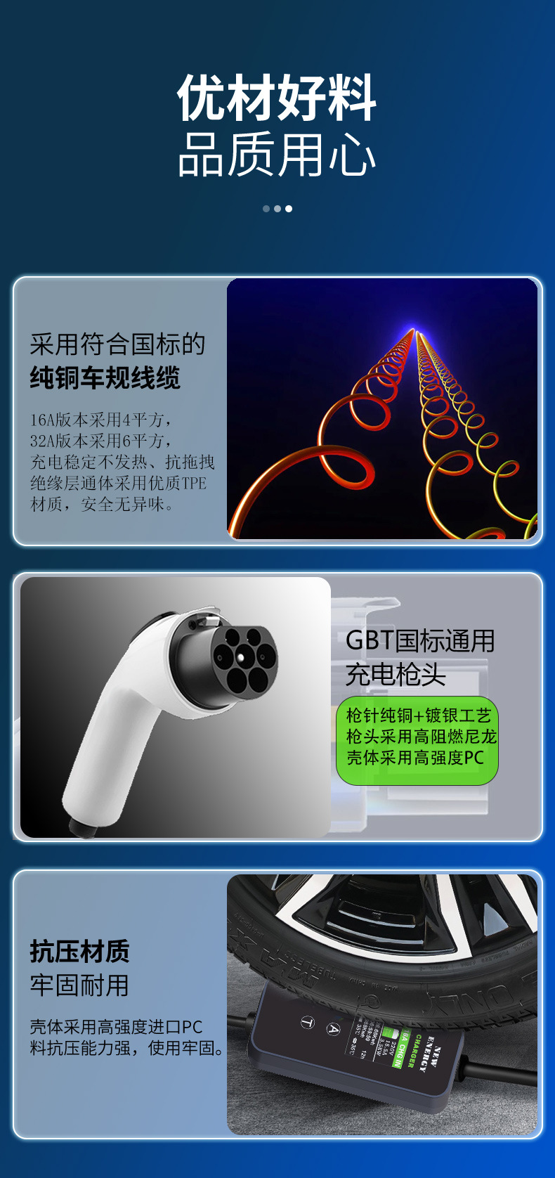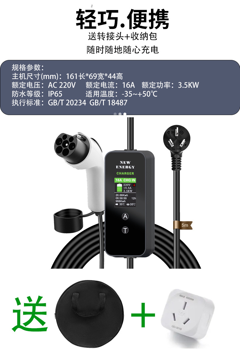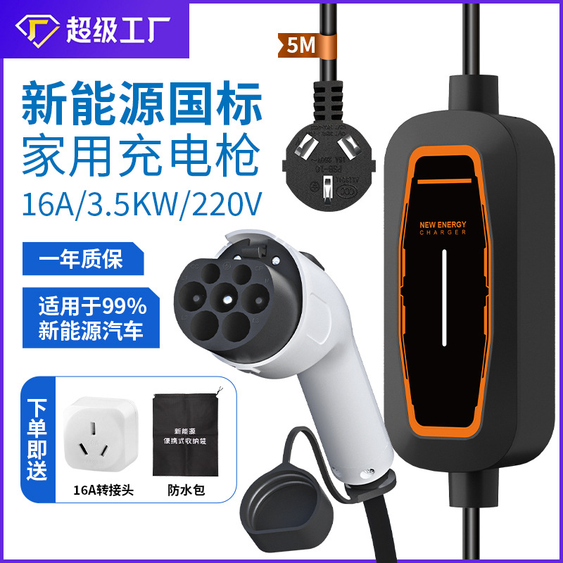 国标16A新能源汽车充电桩3.5KW家用随车充比亚迪新能源便携充电枪