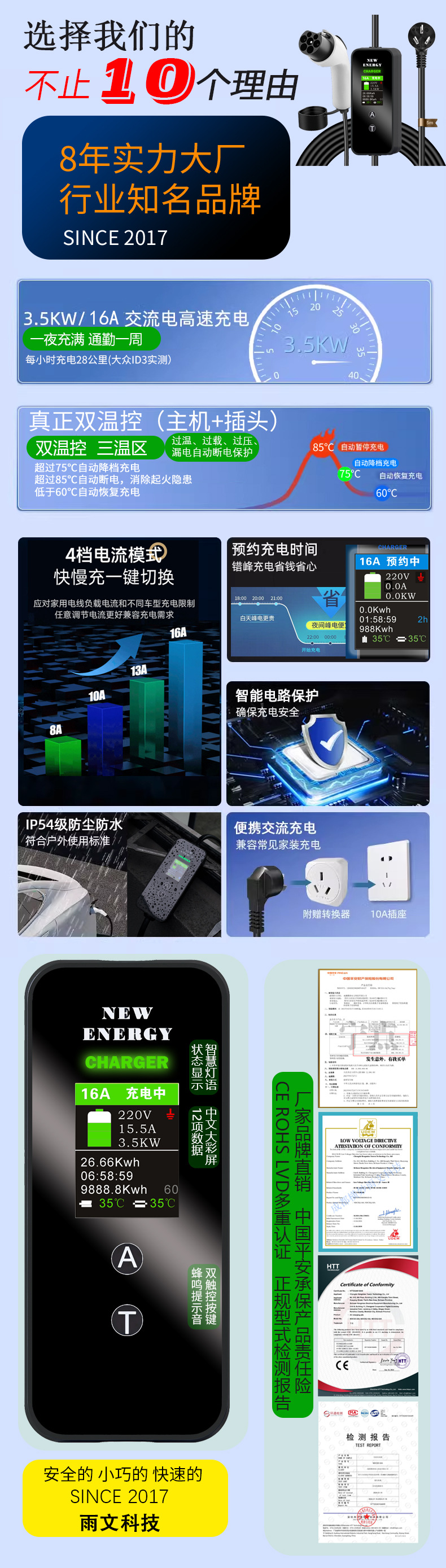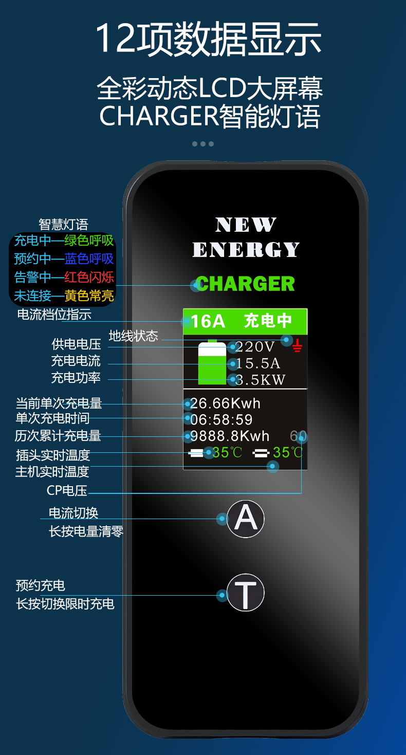 寧点16A車載充電器 国家規格GTB 欧州規格TYPE2 アメリカ規格1 カスタムガンスタンド 220V5Gネットワーク接続充電スタンド