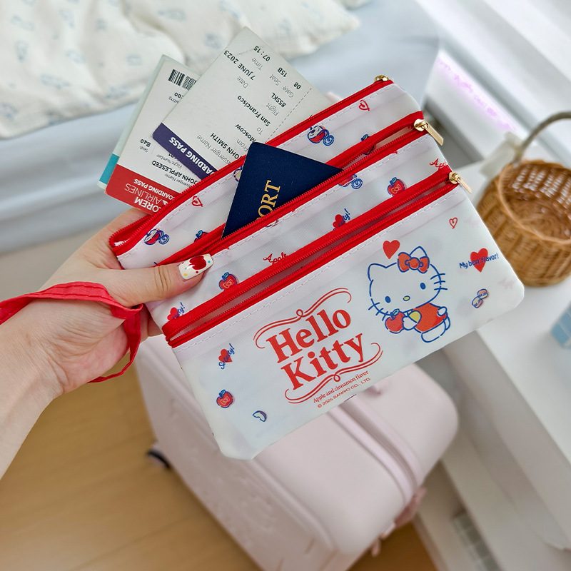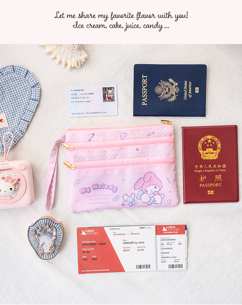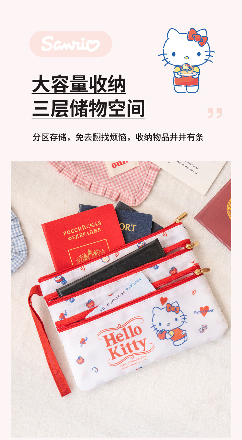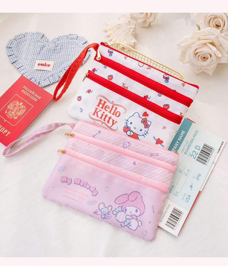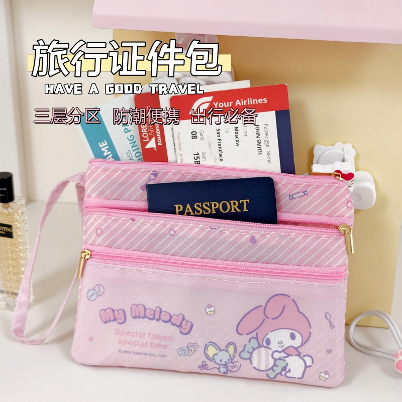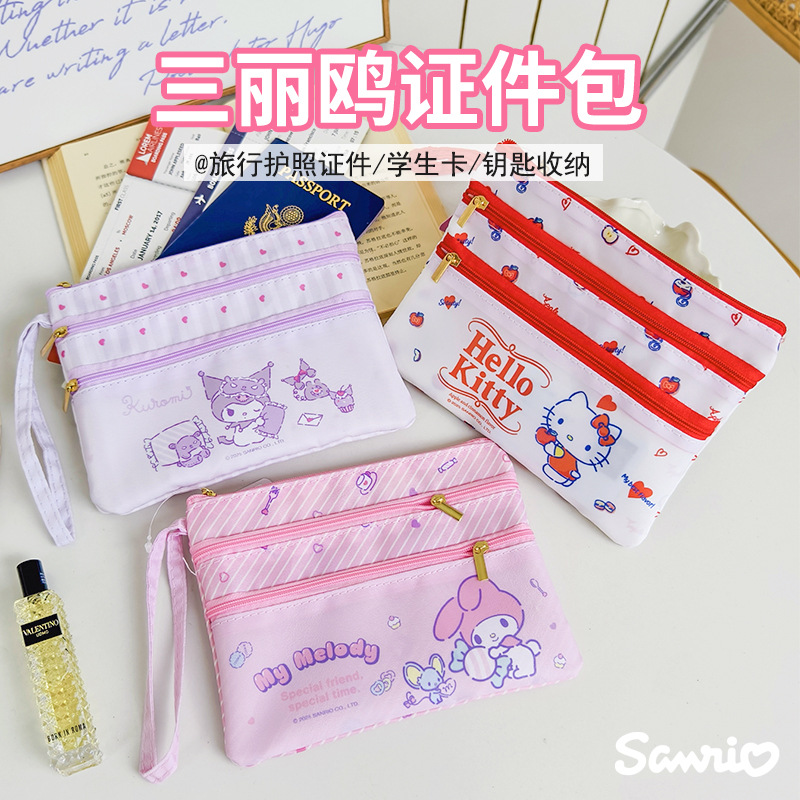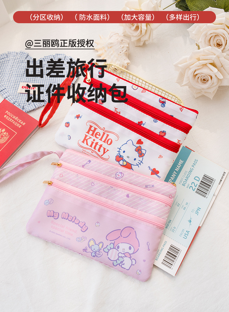 外国貿易クロスボーダーサンリオ証明書バッグケロキティジッパー分格パスポート収納バッグ航空券書類ペンバッグ