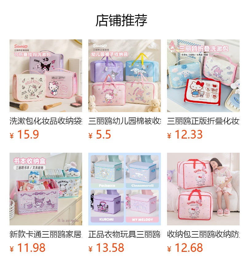 漫画収納袋化粧品データケーブルポータブル整理おばさんタオルバッグ本物のサンリオ小銭入れ多目的