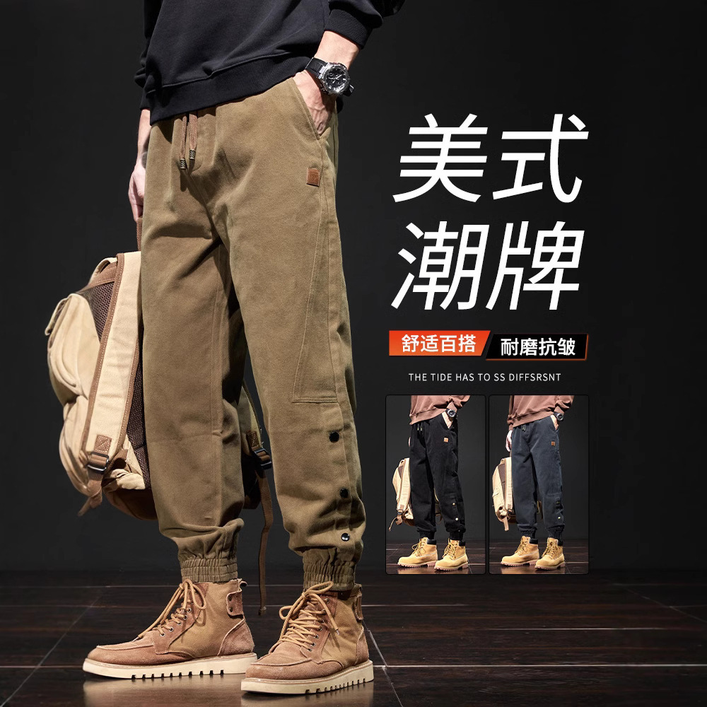 重いポンドの工装のズボンの男性の秋冬のアメリカの潮のブランドのごろつきの帥の2024の新型のハレンの束の足のカジュアルな長いズボンの男性