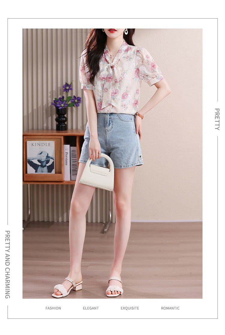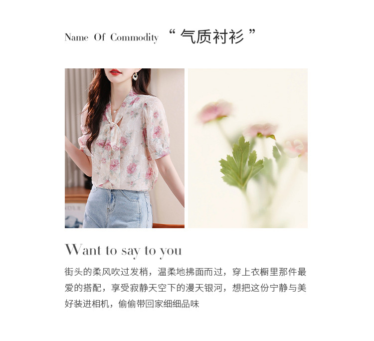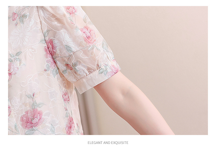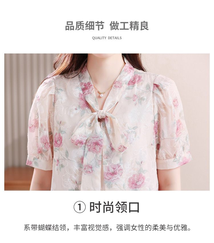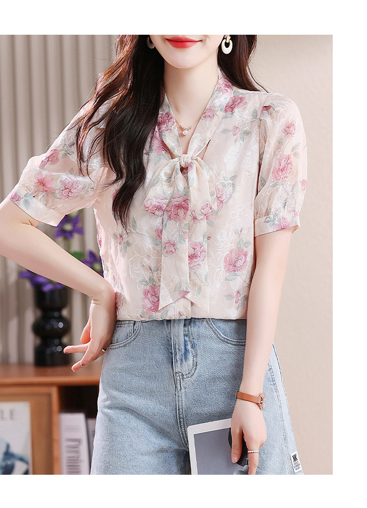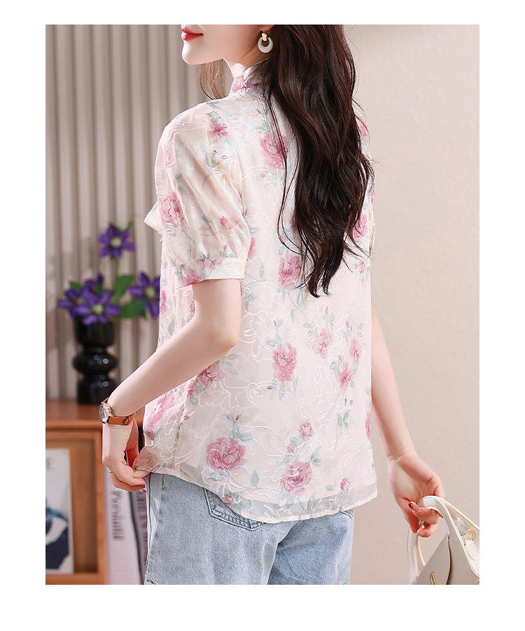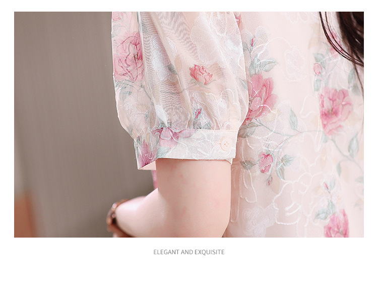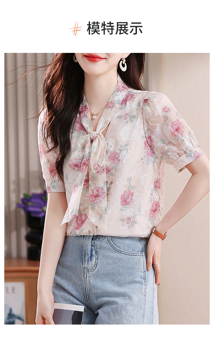 hmwl9960 パフスリーブフレンチシャツ女性のための 2025 夏の新しいスタイルのリボン刺繍半袖シフォントップ
