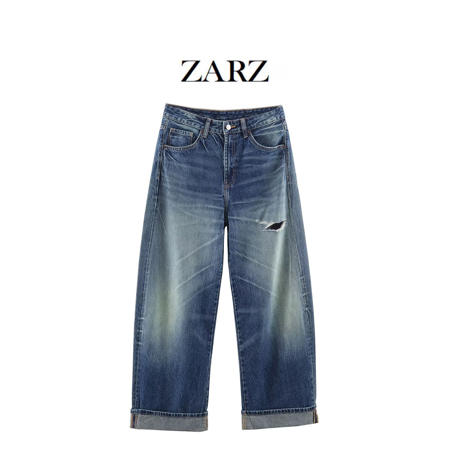 ZARZ 自制 欧美风 新款女装 经典款 中腰宽松破洞牛仔裤4365236