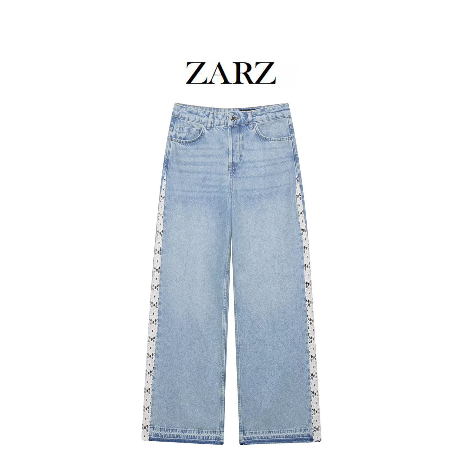 ZARZ 自制 欧美风 新款女装 经典钩针拼接高腰阔腿牛仔裤1889/153