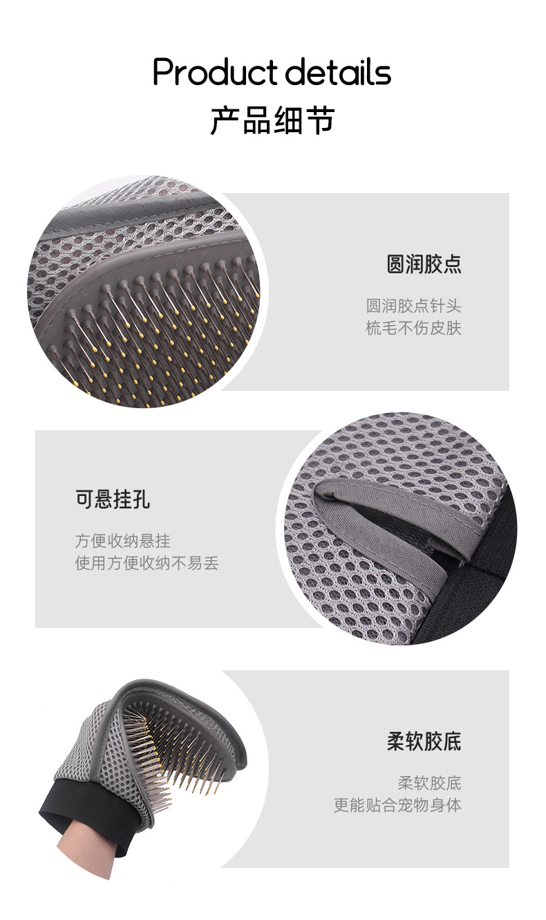 ペットの毛取り手袋、コーミングとマッサージ、調節可能な猫の毛取り手袋、浮き毛除去、脱毛ブラシ、猫手袋