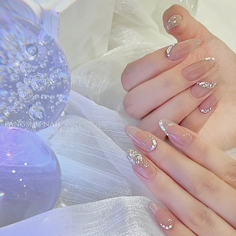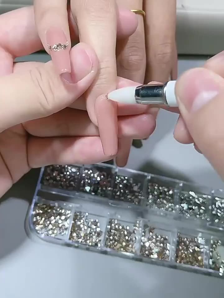 人気のネイルアートアクセサリー、ロングストレートクリスタルパイルダイヤモンド完成品、超キラキラフルダイヤモンド、軽くて豪華なフレンチ合金ネイルデコレーション