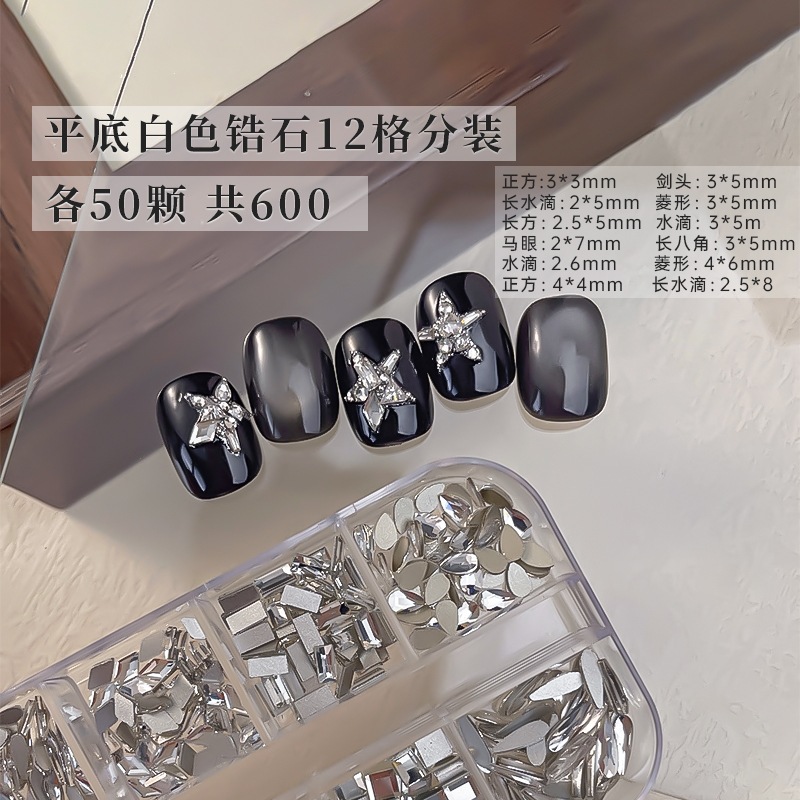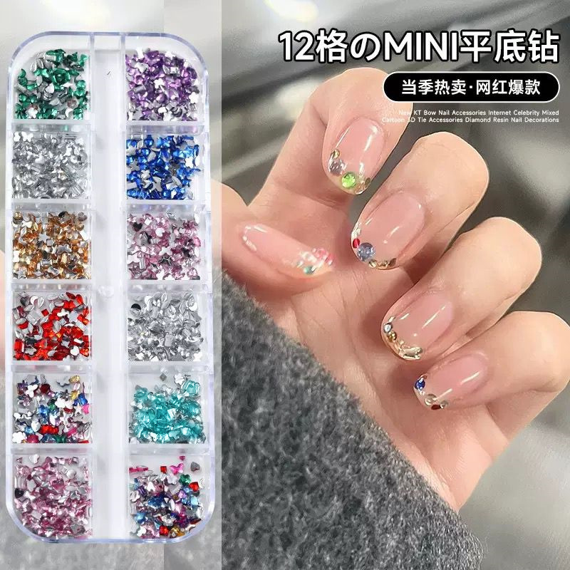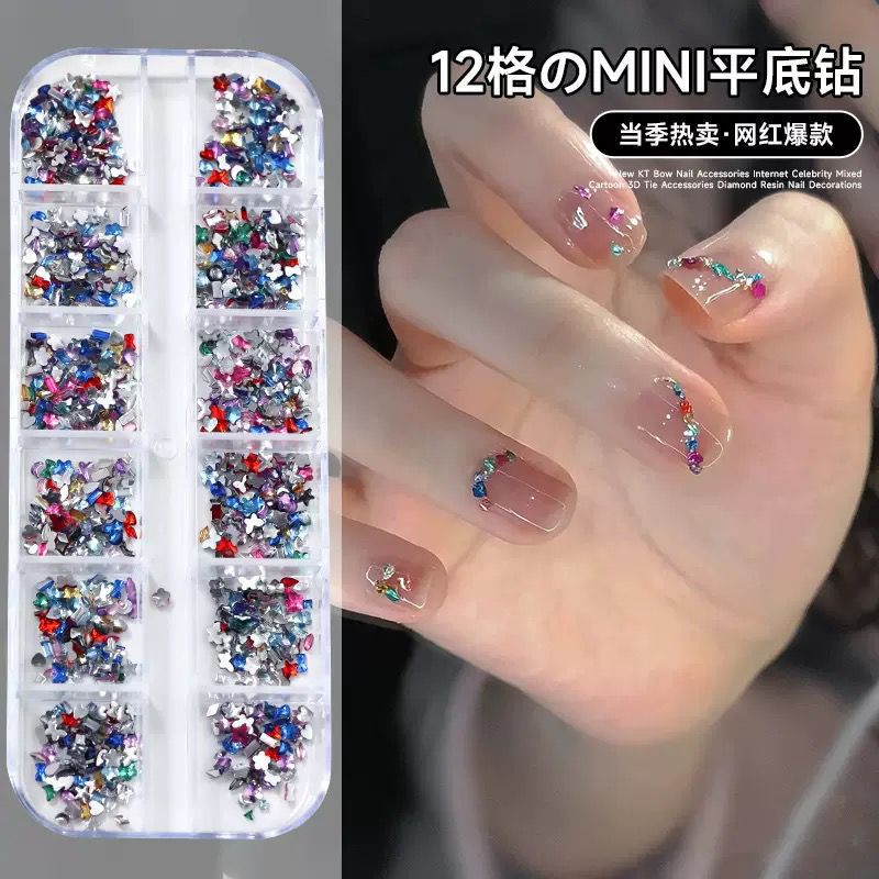 ミックスミニ特殊形状フラットネイルアートダイヤモンド、フラッシュダイヤモンド、小さなボトムダイヤモンド、ネイルアートアクセサリー、インターネットセレブネイルステッカー