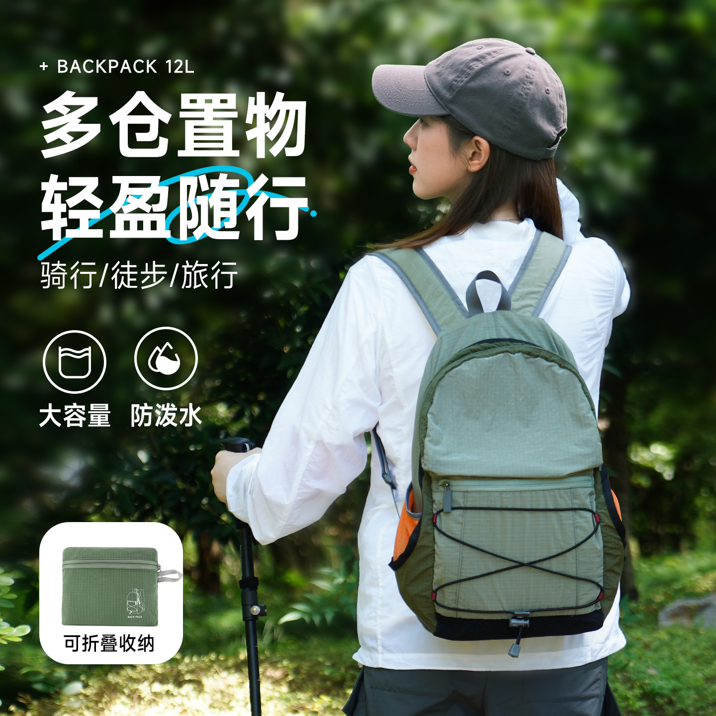 夏季轻便折叠双肩包便携运动背包轻薄旅行登山包