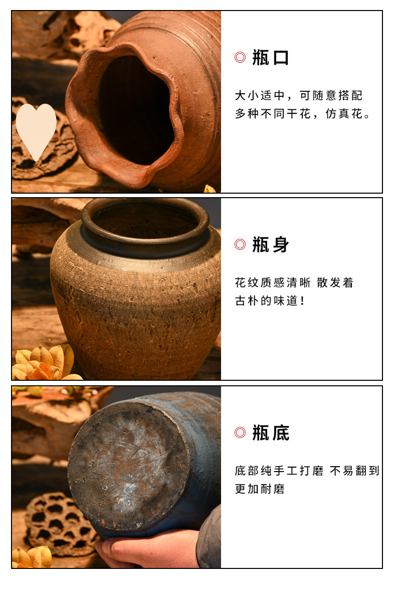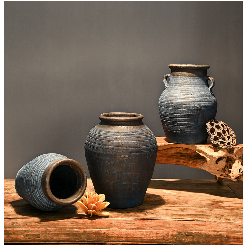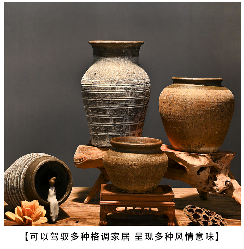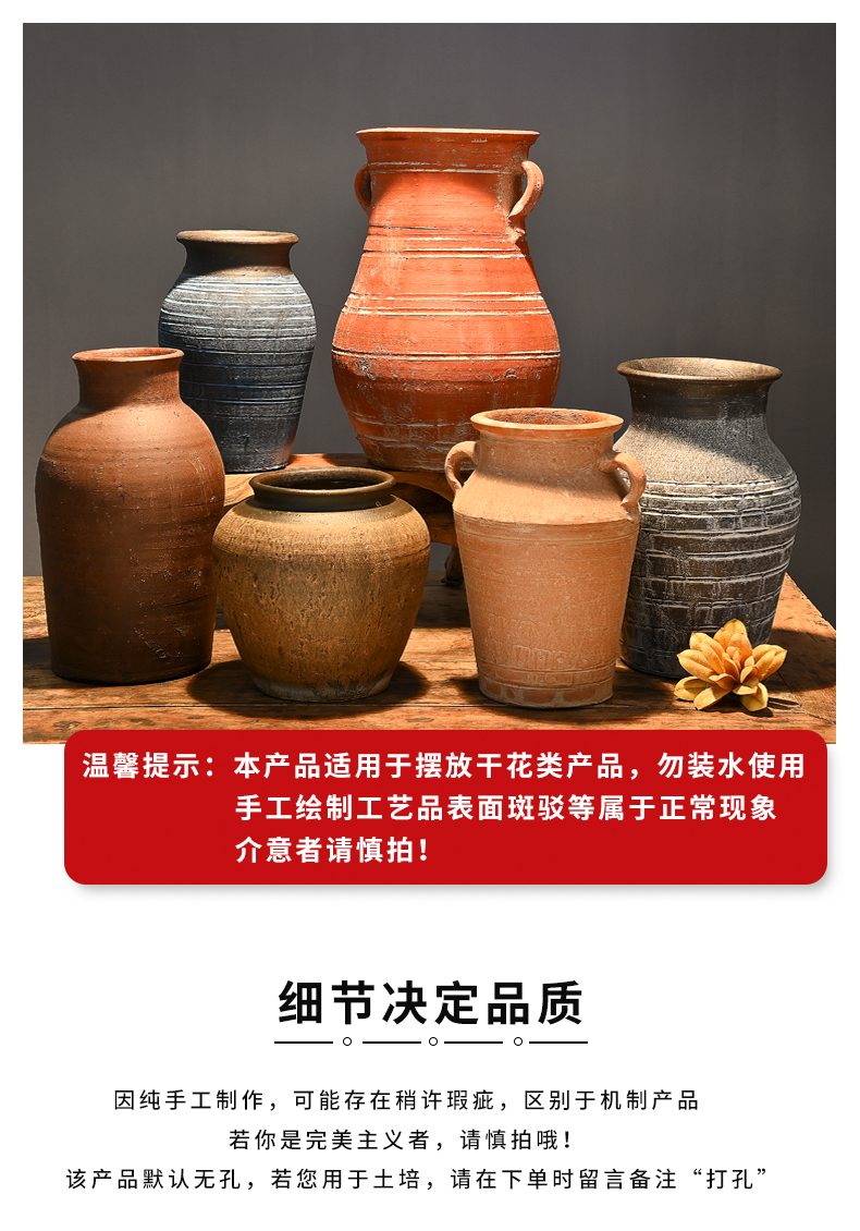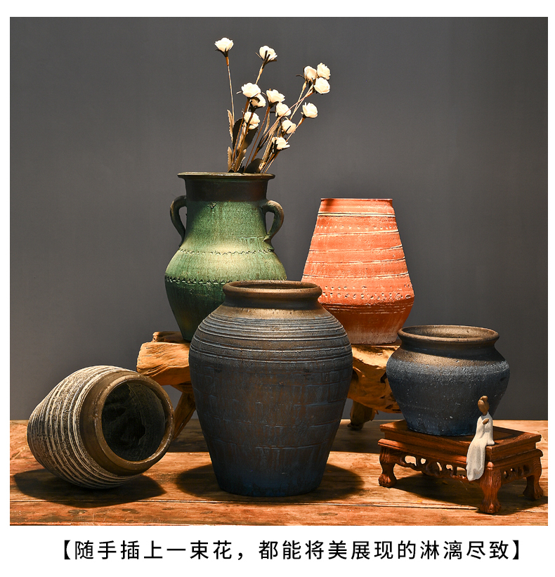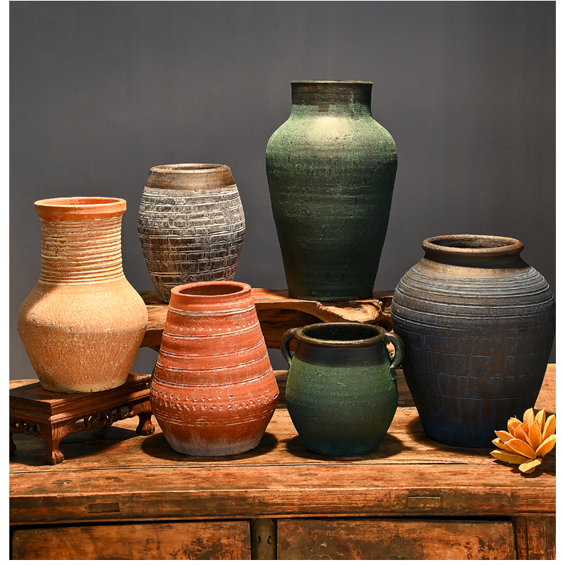 レトロな陶器の壺、手作りの粗い陶器の多肉植物の植木鉢、花瓶、陶器の壺、新しい中国風のドライフラワーのアレンジメント