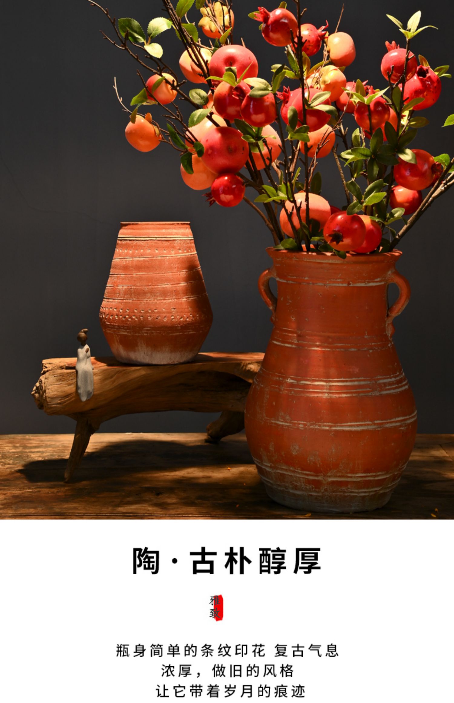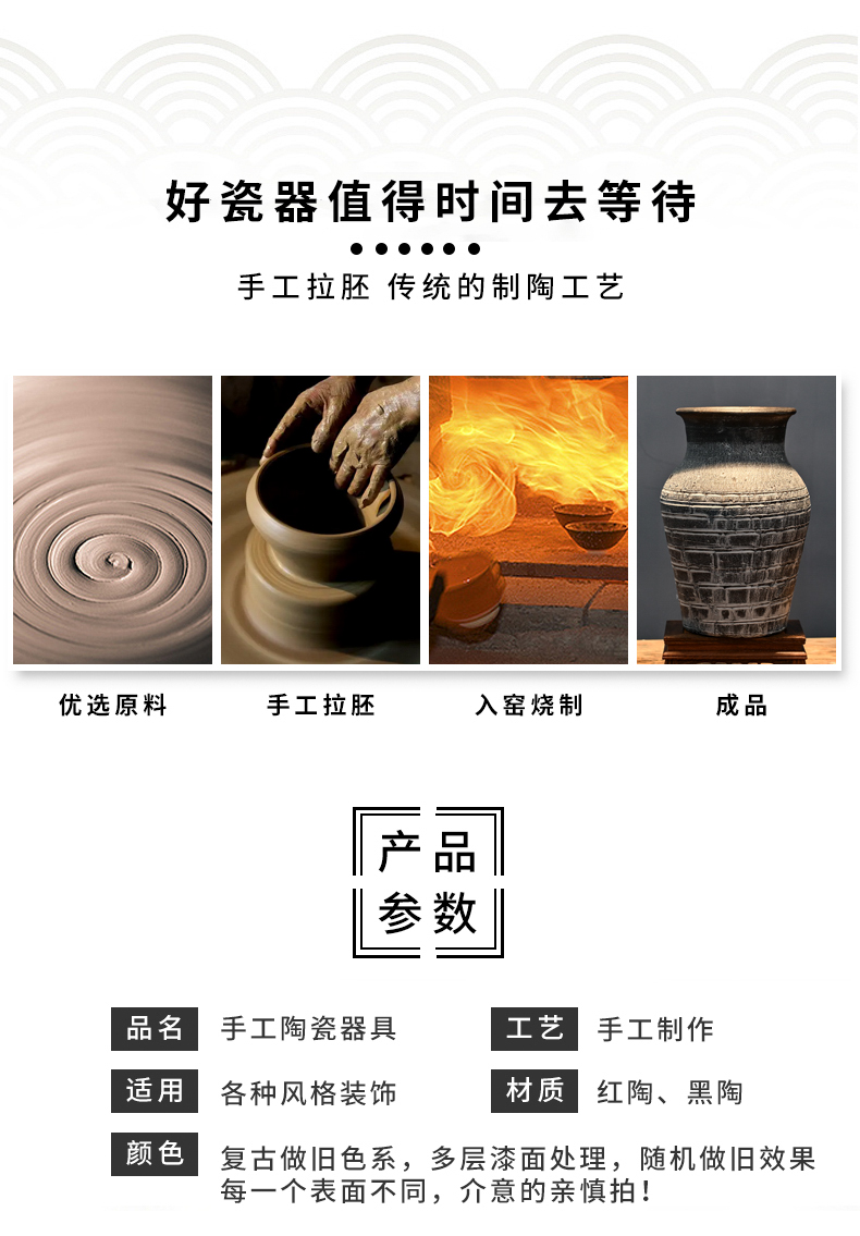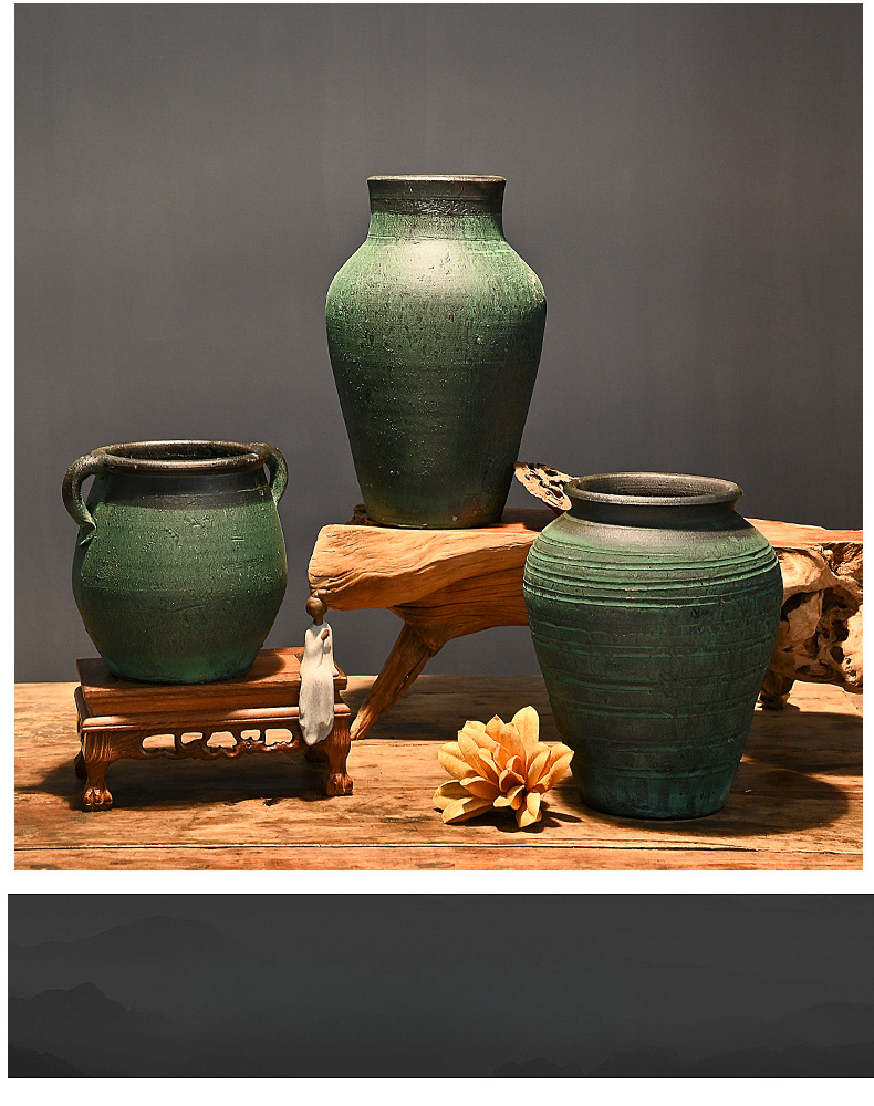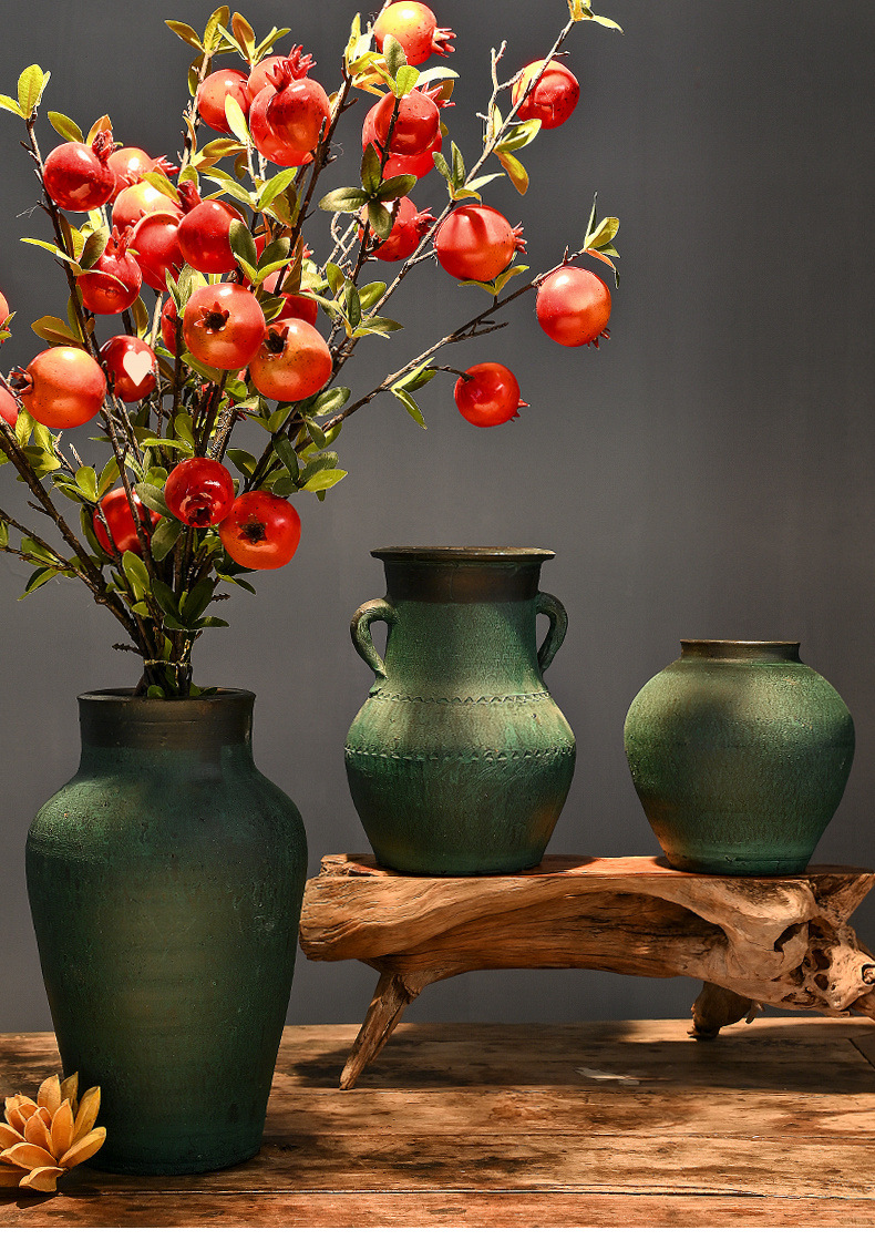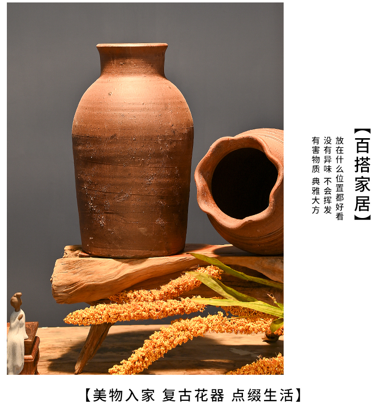 レトロな陶器の壺、手作りの粗い陶器の多肉植物の植木鉢、花瓶、陶器の壺、新しい中国風のドライフラワーのアレンジメント