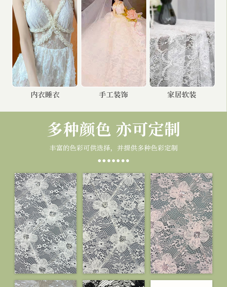 时装 女装 婚纱礼服 DIY手工 连衣裙 童装 旗袍 服饰 装饰布 服装 吊带衫 婚纱 窗帘 配饰 桌布、台布 裙边 家居服 礼服 箱包 装饰 靠垫、抱枕头饰 床上用品 内衣 沙发 家居软饰 时装 服饰 工艺品 舞台服 家纺 衬衫蕾丝内衣 内衣、睡衣 妈妈装 大衣 窗饰 西装 家纺用品 厨卫用品 睡衣 床上用品 礼品鲜花包装 鞋帽 玩具辅料 衬衫 蕾丝面料批发 蕾丝布料
