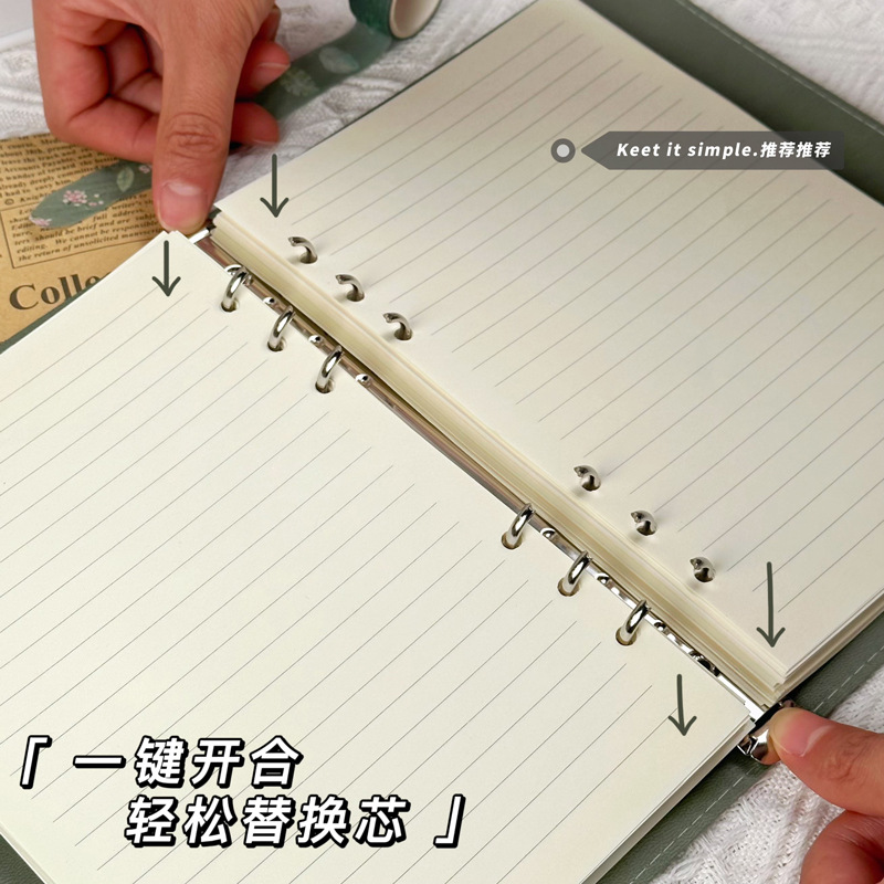 软皮外壳B5九孔活页本活页夹文件夹可拆卸高颜值不硌手封面A5六孔