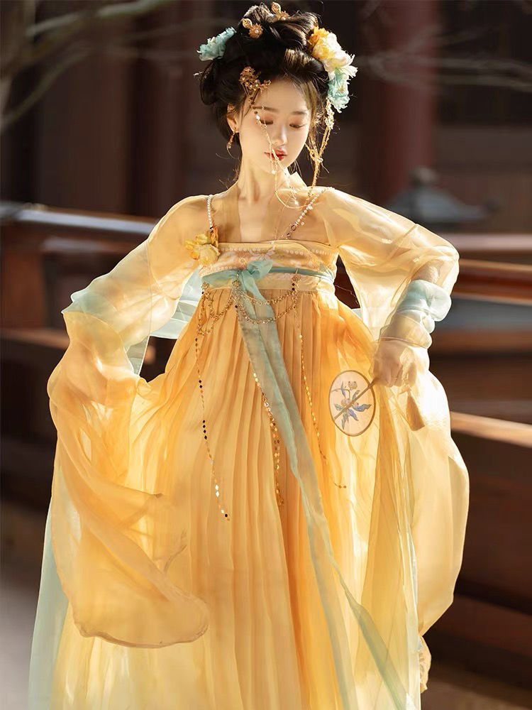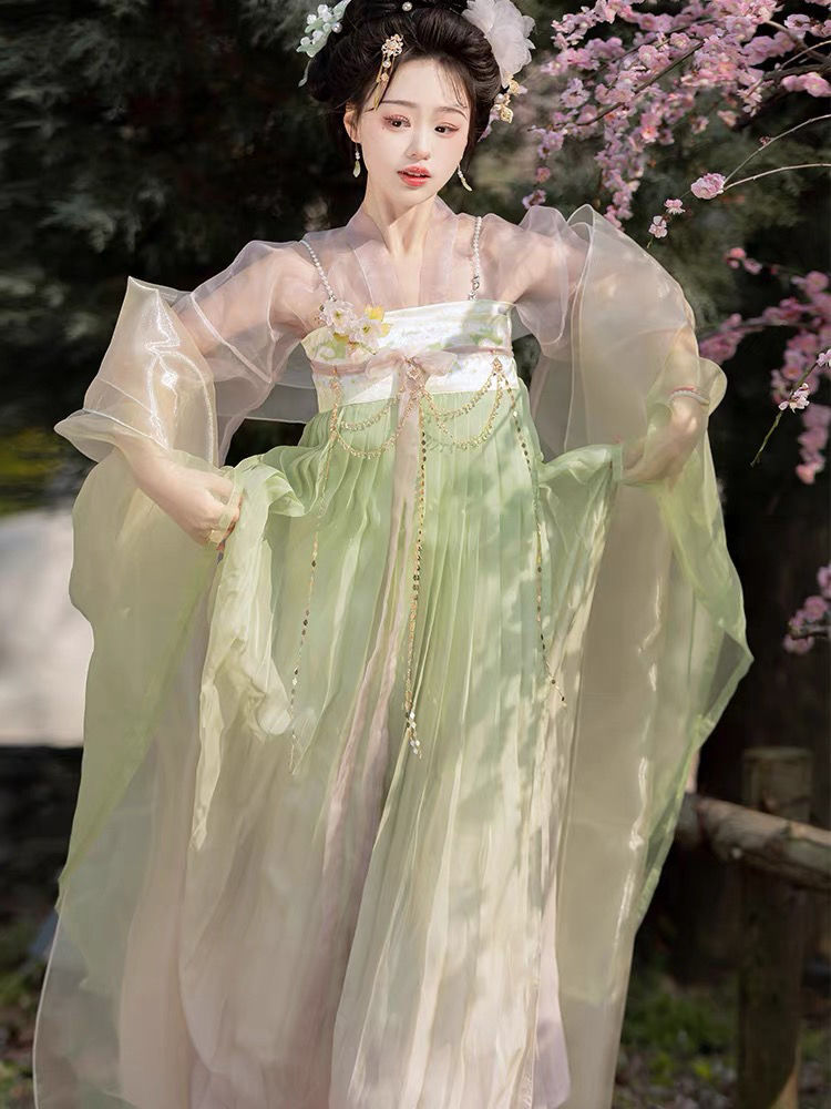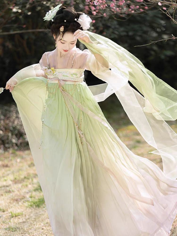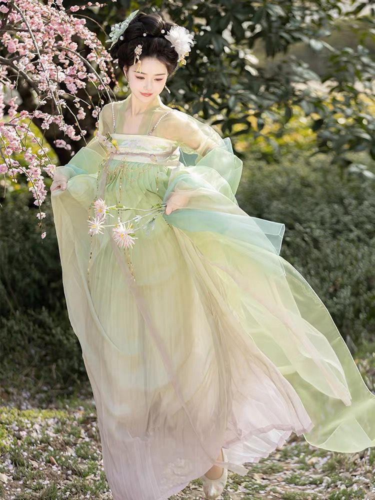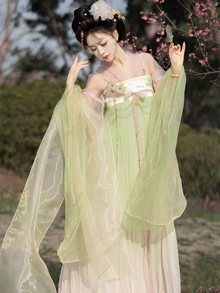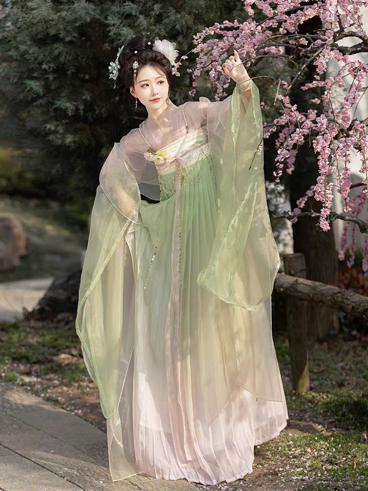 花朝記オリジナル漢服女《春暁》新商品唐製斉胸スカート刺繍大袖シャツ春夏モデルスーツ