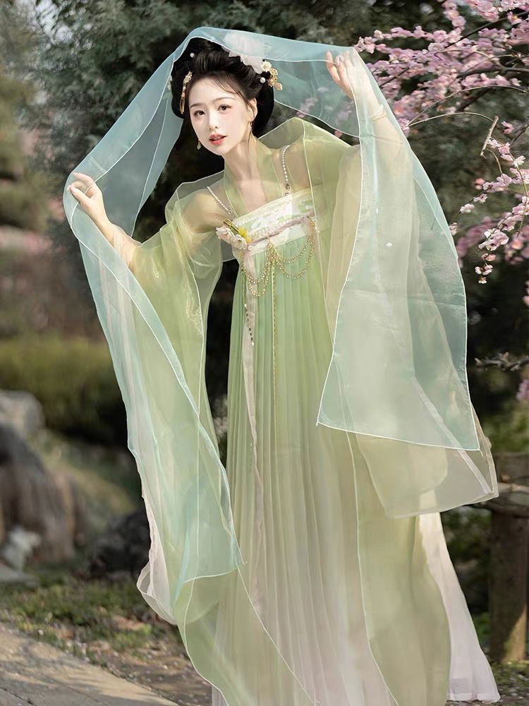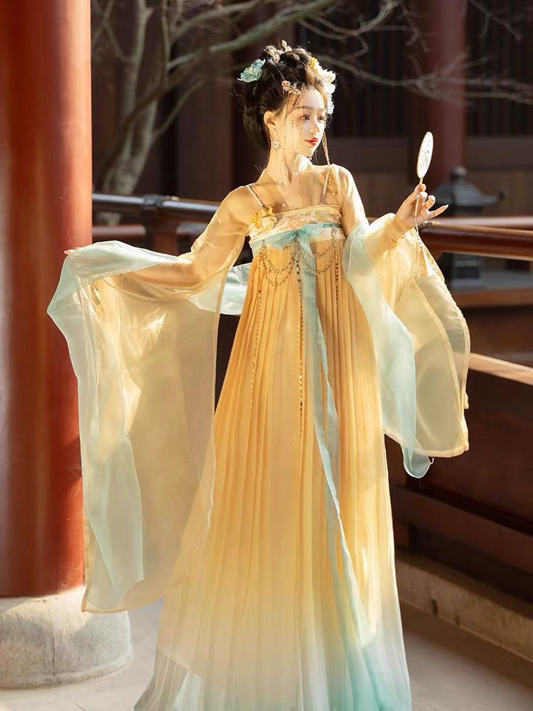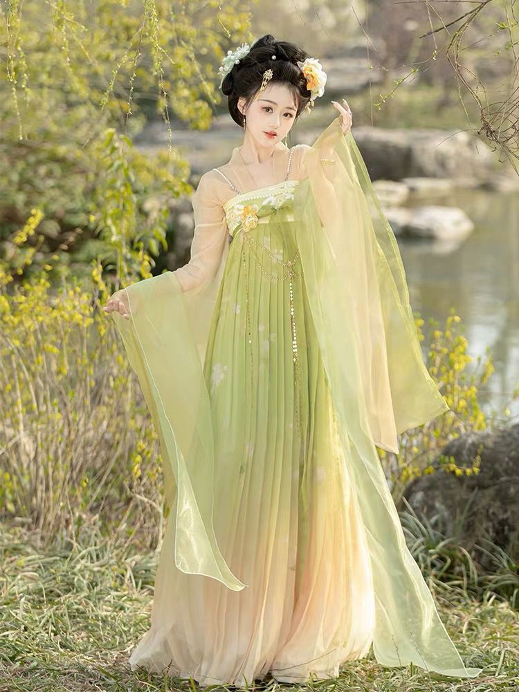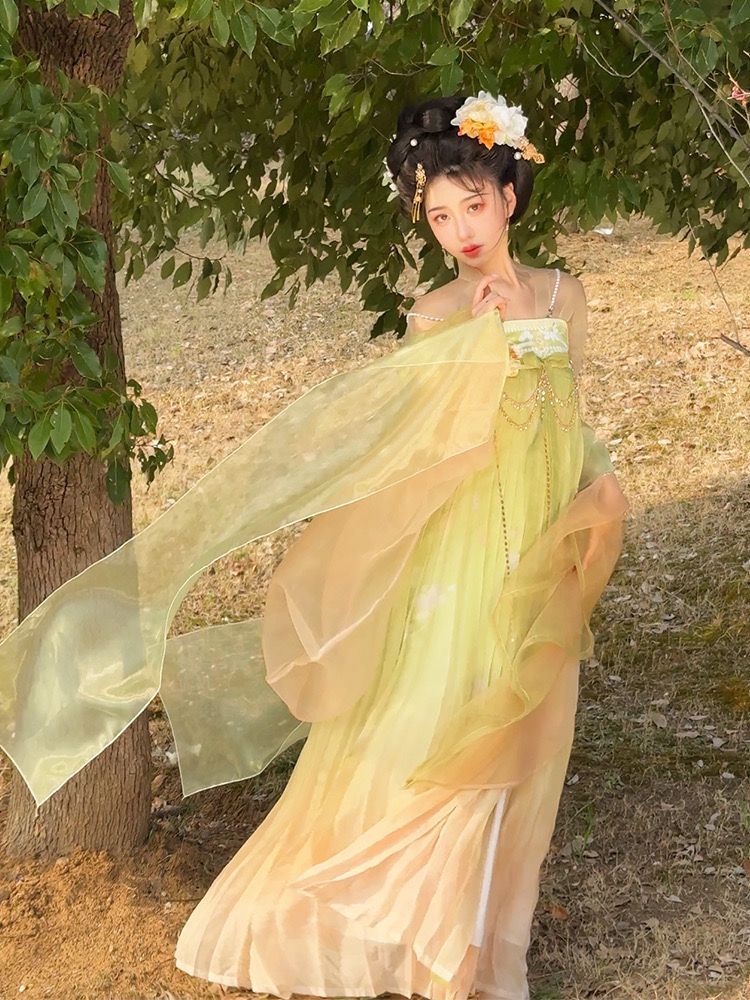 オリジナル本物の漢服女性中国風唐胸丈スカート夏スーパー妖精キャベツフルセット古代衣装