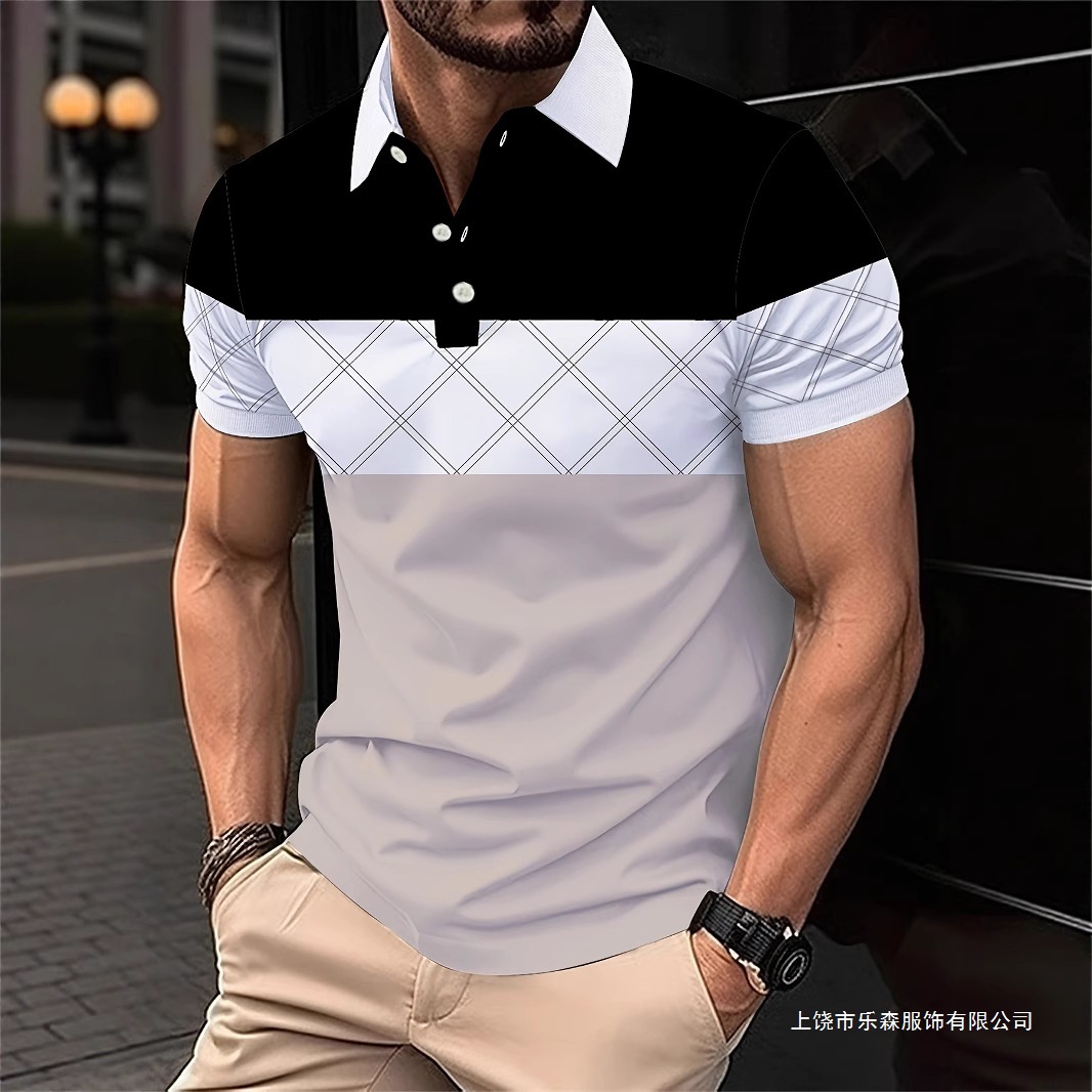 2025年アマゾン夏人気メンズポロシャツカジュアルファッションシンプルなカラーマッチング3Dプリントラペル半袖トップ