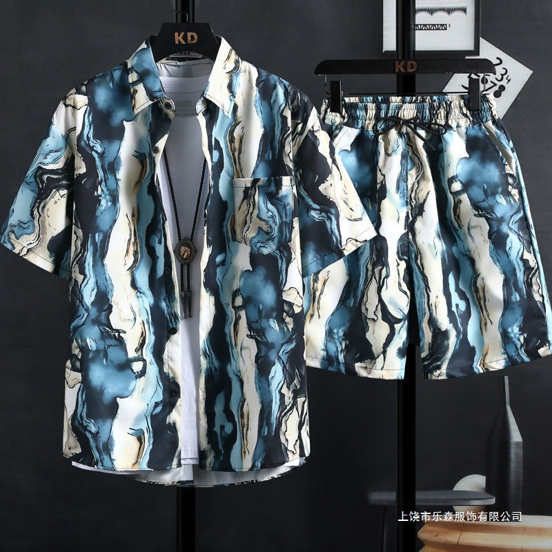 新しいシャツ夏半袖ショーツスーツメンズカジュアルツーピースセット海辺ビーチ休暇ハンサムメンズセット