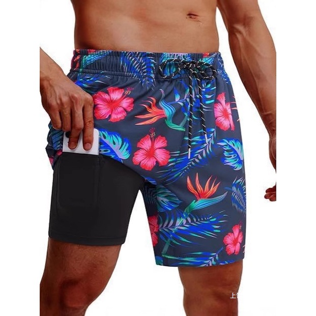 花柄シャークヘッドシリーズ3Dデジタルプリント男女兼用カジュアルスポーツショーツハワイアンビーチパンツトレンド新作