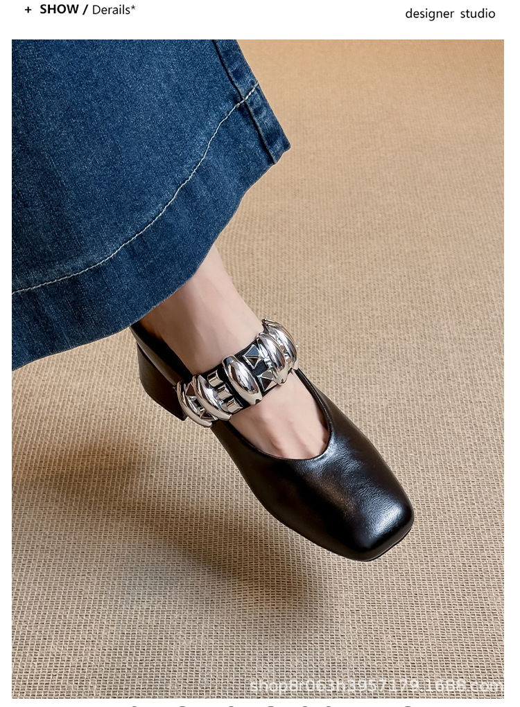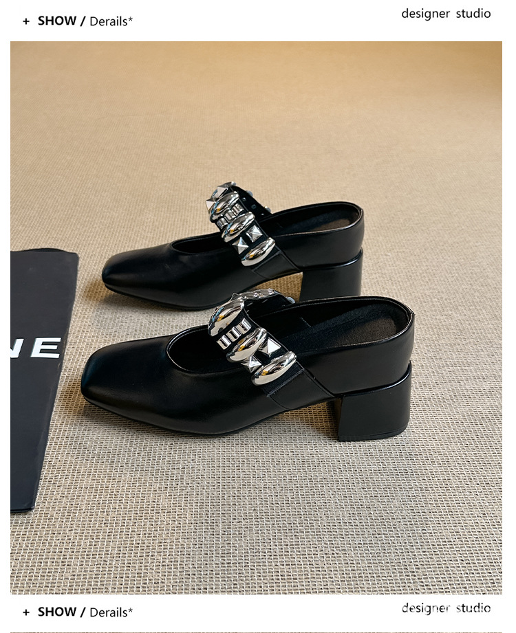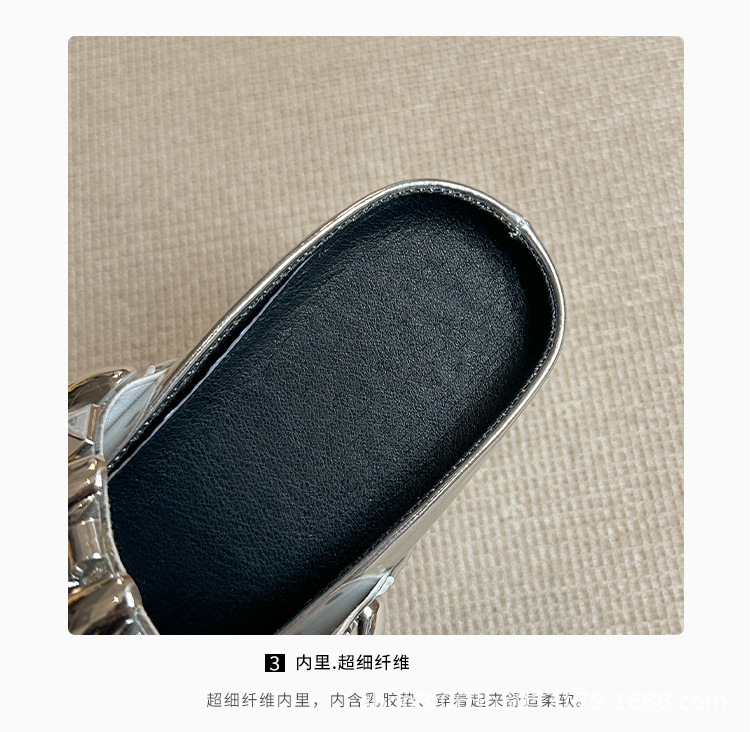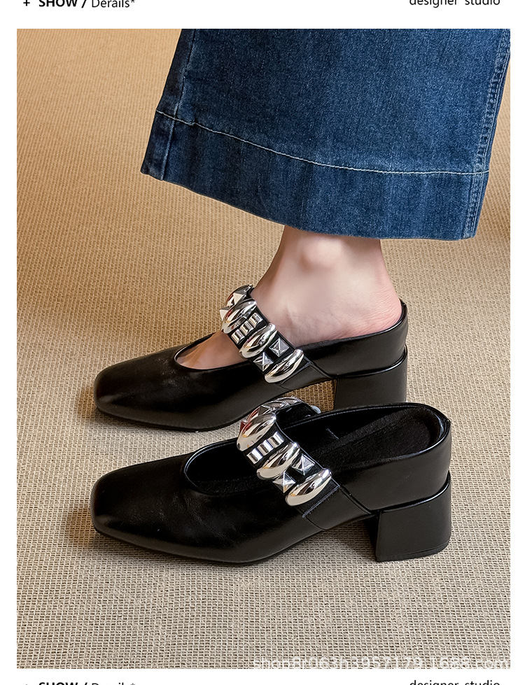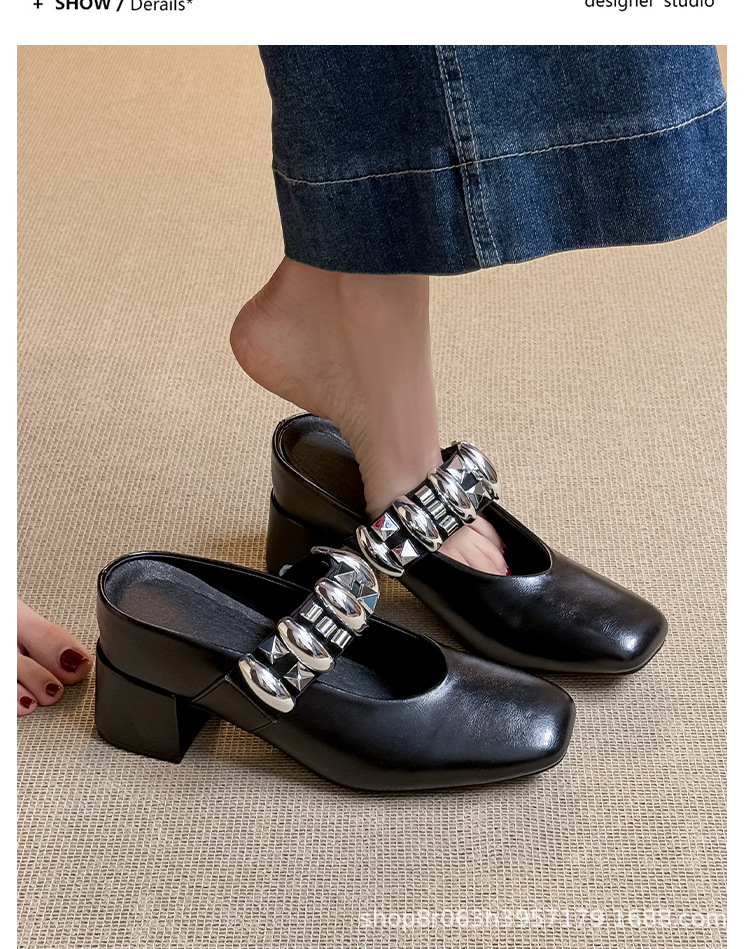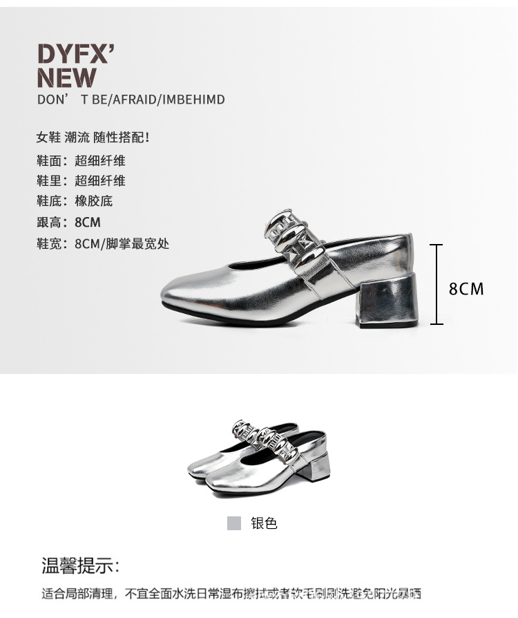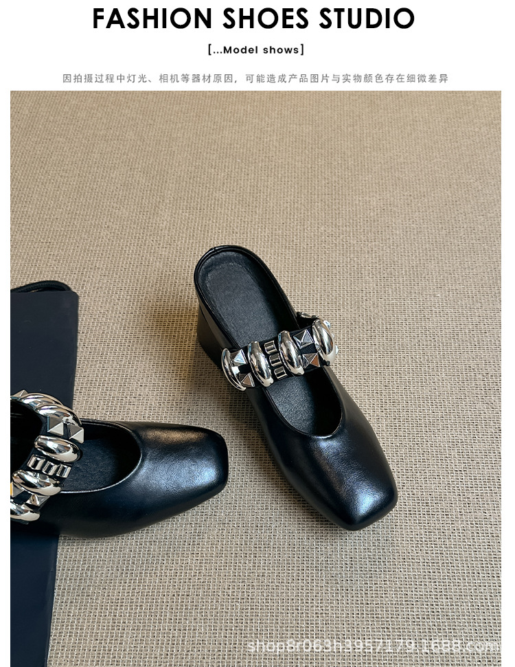包頭ハーフスリッパレディースハイヒール2025春夏新作シルバースクエアトゥ小柄インナー身長アップシューズメリージェーン