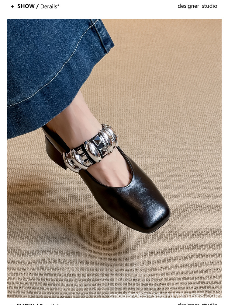 【现货】7CM内增高玛丽珍鞋女新款方头浅口单鞋女粗跟软底高跟鞋