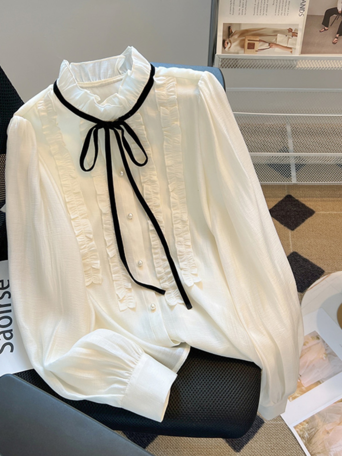 小香风蝴蝶结衬衫女春秋温柔边法式高级复古宫廷系带长袖雪纺上衣